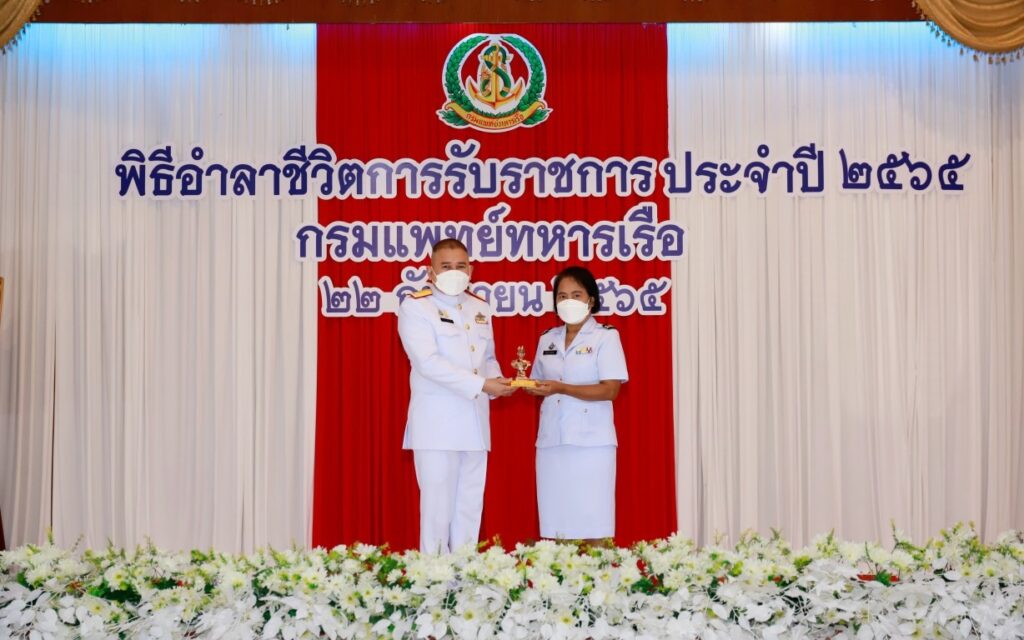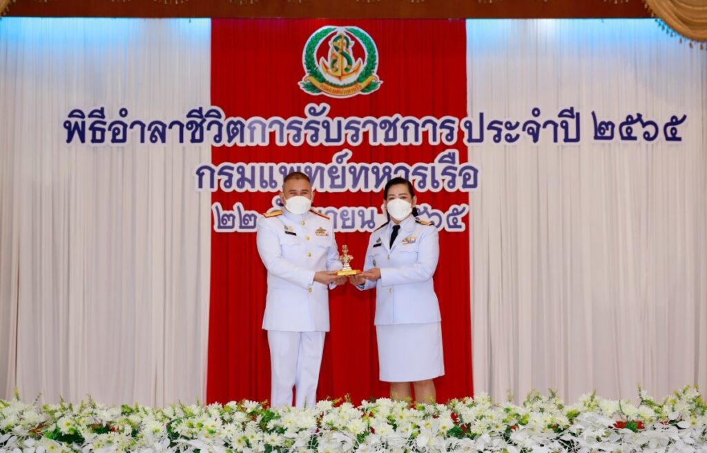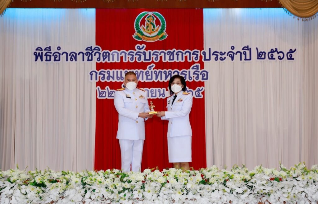 พลเรือโท ชลธร สุวรรณกิตติ เจ้ากรมแพทย์ทหารเรือ เป็นประธานในพิธีอำลาชีวิตการรับราชการของผู้ครบกำหนดเกษียณอายุราชการ และผู้เกษียณอายุราชการก่อนกำหนด ปีงบประมาณ ๒๕๖๕ พื้นที่กรุงเทพฯ และปริมณฑล โดยมีผู้บังคับบัญชา ข้าราชการ และลูกจ้างของกรมแพทย์ทหารเรือ เข้าร่วมพิธีฯ ณ ห้องปิ่นเกล้า สโมสรกรมแพทย์ทหารเรือ เมื่อวันที่ ๒๒ กันยายน พ.ศ.๒๕๖๕