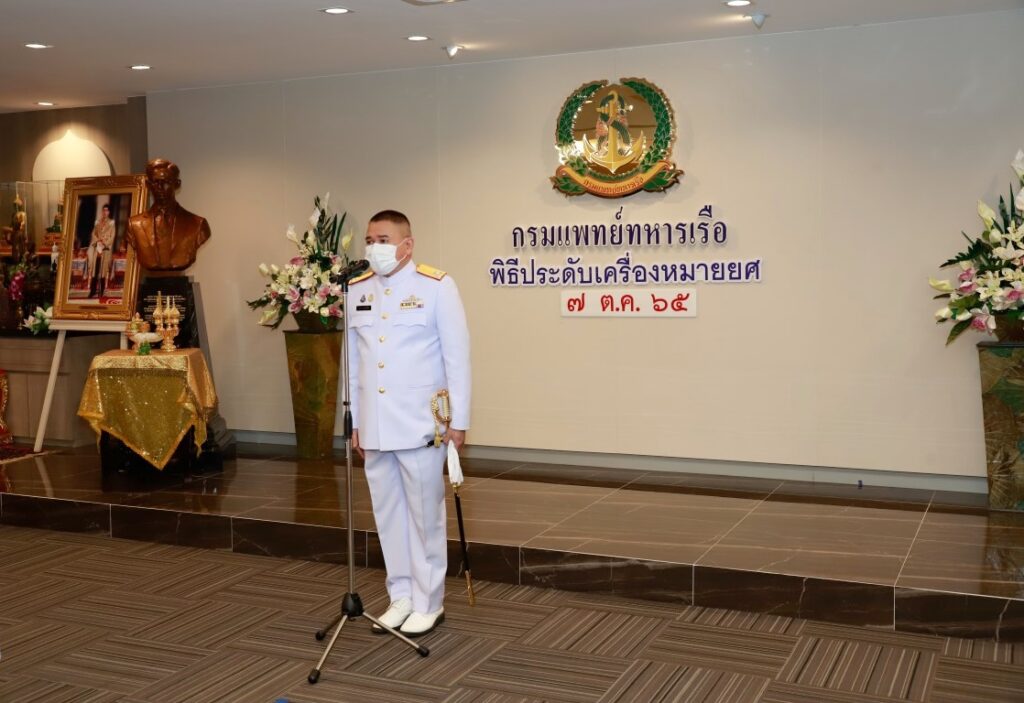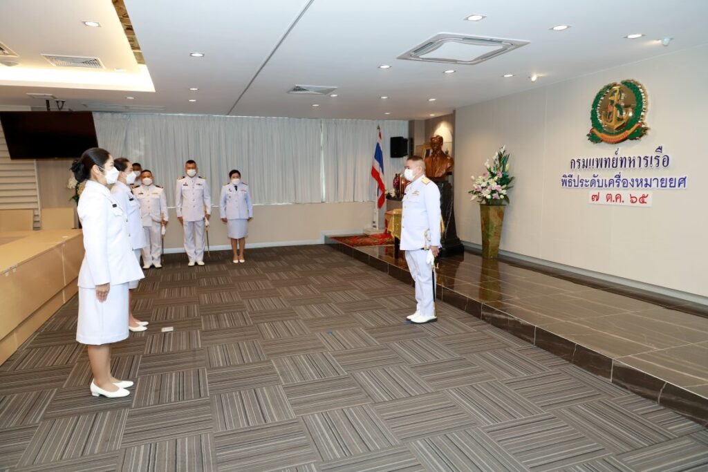 พลเรือโท ชลธร สุวรรณกิตติ เจ้ากรมแพทย์ทหารเรือ เป็นประธานในพิธีประดับเครื่องหมายยศว่าที่เรือตรีหญิง ให้แก่ข้าราชการกลาโหมพลเรือนชั้นสัญญาบัตร สังกัดกรมแพทย์ทหารเรือ โดยมีผู้บังคับบัญชาและข้าราชการของกรมแพทย์ทหารเรือ เข้าร่วมพิธีฯ ณ ห้องประชุมกรมแพทย์ทหารเรือ ๓ อาคารกองบังคับการกรมแพทย์ทหารเรือ ชั้น ๓ เมื่อวันที่ ๗ ตุลาคม พ.ศ.๒๕๖๕