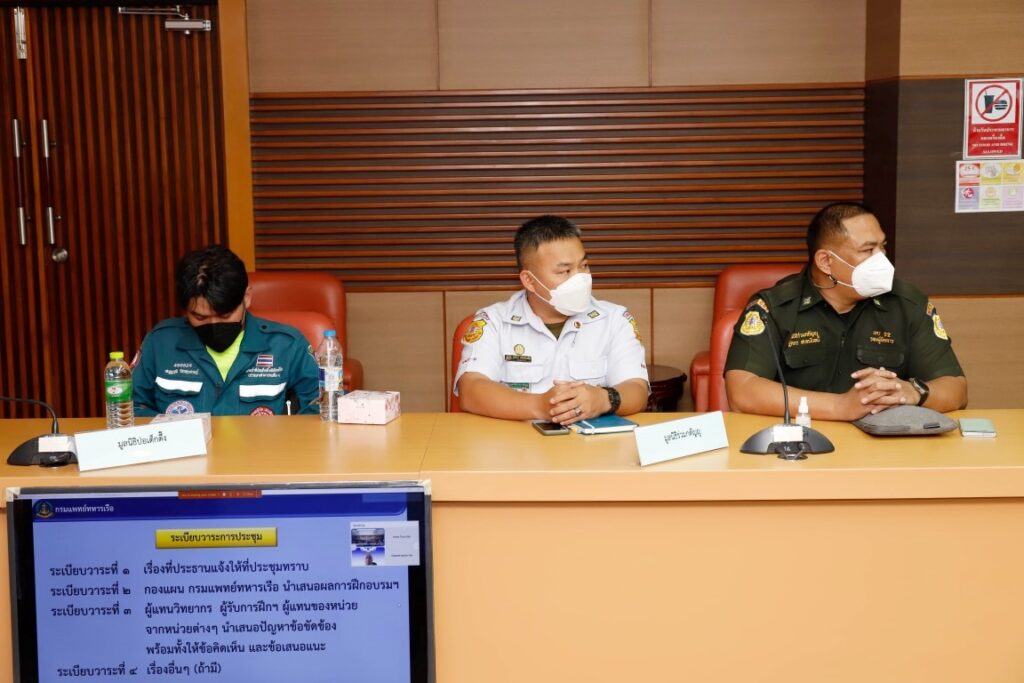 พลเรือตรี นรเสทธ์ เอื้อไพบูลย์ รองเจ้ากรมแพทย์ทหารเรือ เป็นประธานการประชุมสรุปบทเรียนหลังการฝึกอบรมทีมปฏิบัติการฉุกเฉินในพื้นที่เสี่ยงภัย โดยมีข้าราชการของกรมแพทย์ทหารเรือ และหน่วยงานที่เกี่ยวข้อง เข้าร่วมประชุมฯ ณ ห้องประชุมกรมแพทย์ทหารเรือ ๑ อาคารกองบังคับการกรมแพทย์ทหารเรือ ชั้น ๒ เมื่อวันที่ ๒๒ ธันวาคม พ.ศ.๒๕๖๕