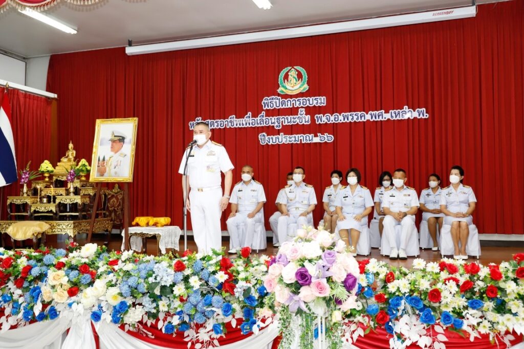 พลเรือโท ชลธร สุวรรณกิตติ เจ้ากรมแพทย์ทหารเรือ เป็นประธานในพิธีปิดหลักสูตรอาชีพเพื่อเลื่อนฐานะชั้น พันจ่าเอก พรรค พิเศษ เหล่า ทหารแพทย์ ปีงบประมาณ ๖๖ โดยมี ผู้บังคับบัญชาและข้าราชการของกรมแพทย์ทหารเรือ เข้าร่วมพิธีฯ ณ ห้องประชุมนาวิกเวชกิจ ๑ โรงเรียนนาวิกเวชกิจ ศูนย์วิทยาการ กรมแพทย์ทหารเรือ เมื่อวันที่ ๑๐ กุมภาพันธ์ พ.ศ.๒๕๖๖