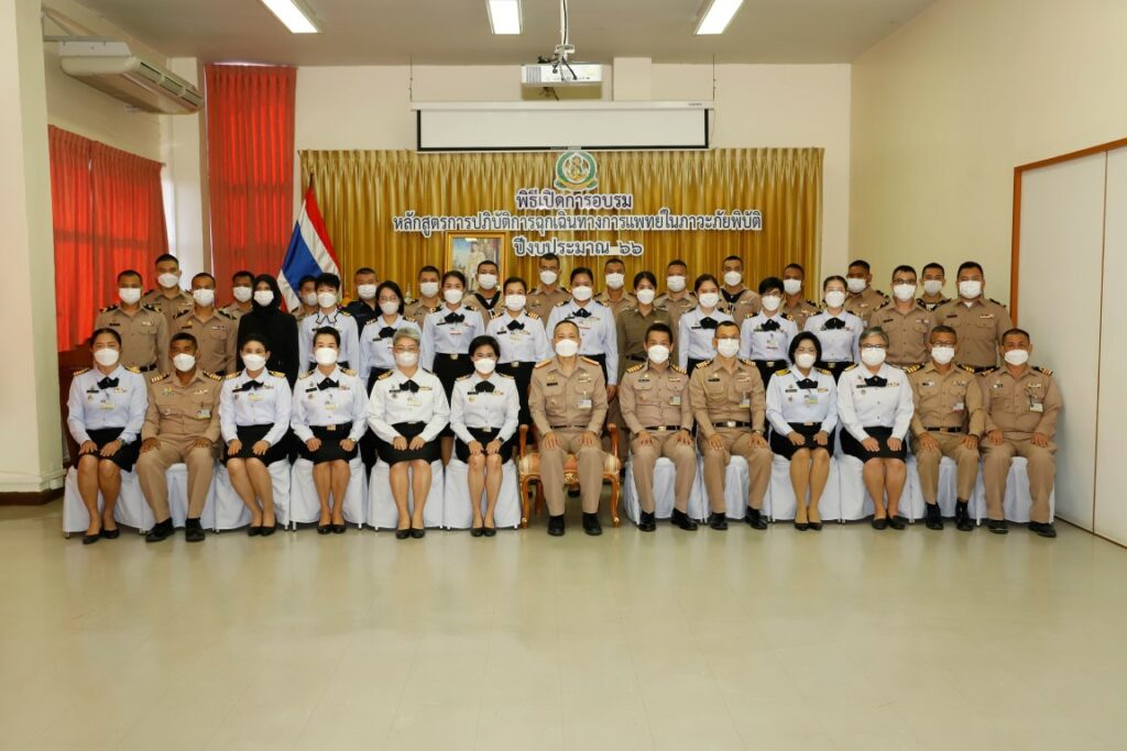 พลเรือตรี ปิยบุตร เนียมประดิษฐ์ รองเจ้ากรมแพทย์ทหารเรือ เป็นประธานในพิธีเปิดการอบรมหลักสูตรการปฏิบัติการฉุกเฉินทางการแพทย์ในภาวะภัยพิบัติ ปีงบประมาณ ๖๖ โดยมีผู้บังคับบัญชาและข้าราชการของกรมแพทย์ทหารเรือ เข้าร่วมพิธีฯ ณ ห้องฝึกอบรม ๑ กองวิทยาการ ศูนย์วิทยาการ กรมแพทย์ทหารเรือ เมื่อวันที่ ๒๐ กุมภาพันธ์ พ.ศ.๒๕๖๖