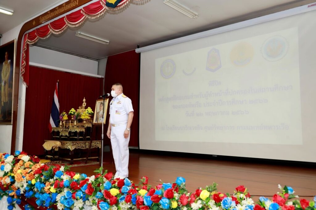 พลเรือโท ชลธร สุวรรณกิตติ เจ้ากรมแพทย์ทหารเรือ เป็นประธานในพิธีปิด และมอบใบประกาศนียบัตร แก่ผู้เข้าการฝึกอบรมสำหรับผู้ทำหน้าที่ปกครองในสถาบันการศึกษา ประจำปีการศึกษา ๒๕๖๖ โดยมีผู้บังคับบัญชาและข้าราชการของกรมแพทย์ทหารเรือ เข้าร่วมพิธีฯ ณ ห้องประชุมนาวิกเวชกิจ ๑ โรงเรียนนาวิกเวชกิจ ศูนย์วิทยาการ กรมแพทย์ทหารเรือ เมื่อวันที่ ๒๒ พฤษภาคม พ.ศ.๒๕๖๖