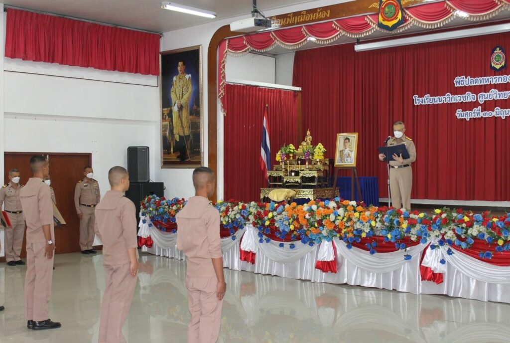 พลเรือตรี นรเสทธ์ เอื้อไพบูลย์ รองเจ้ากรมแพทย์ทหารเรือ เป็นประธานในพิธีปลดทหารกองประจำการ ผลัดที่ ๑/๒๕๖๔ จำนวน ๔ นาย โดยมีผู้บังคับบัญชาและข้าราชการของกรมแพทย์ทหารเรือ เข้าร่วมพิธีฯ ณ ห้องประชุมนาวิกเวชกิจ ๑ โรงเรียนนาวิกเวชกิจ ศูนย์วิทยาการ กรมแพทย์ทหารเรือ เมื่อวันที่ ๓๐ มิถุนายน พ.ศ.๒๕๖๖
