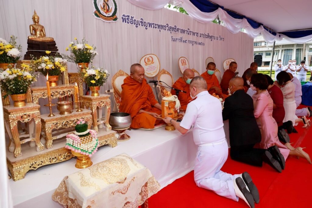พลเรือโท ชลธร สุวรรณกิตติ เจ้ากรมแพทย์ทหารเรือ เป็นประธานในพิธีอันเชิญพระพุทธวิสุทธิศาสดานิราพาธ (พระพุทธรูปหยกแกะสลักปางมารวิชัย) ไปประดิษฐาน ณ วิหารแห่งใหม่ ประกอบด้วย พิธีสักการะสิ่งศักดิ์สิทธิ์ในพื้นที่กรมแพทย์ทหารเรือ พิธีพราหมณ์ และพิธีสงฆ์ โดยมีผู้บังคับบัญชา อดีตผู้บังคับบัญชา และข้าราชการของกรมแพทย์ทหารเรือ เข้าร่วมพิธีฯ ณ วิหารใหม่ซึ่งอยู่ระหว่างดำเนินการก่อสร้าง พื้นที่กรมแพทย์ทหารเรือ เมื่อวันที่ ๑๕ กรกฎาคม พ.ศ.๒๕๖๖