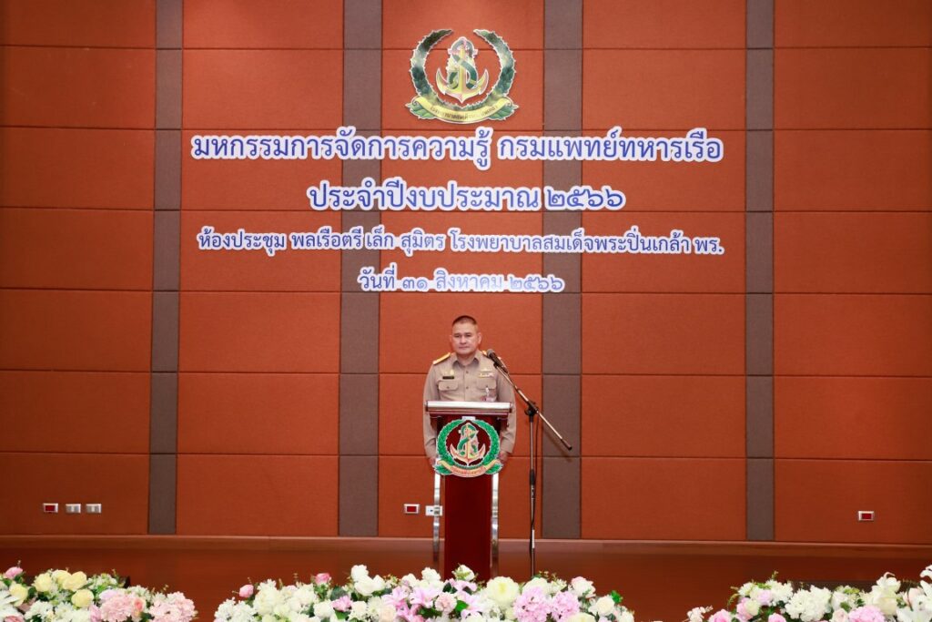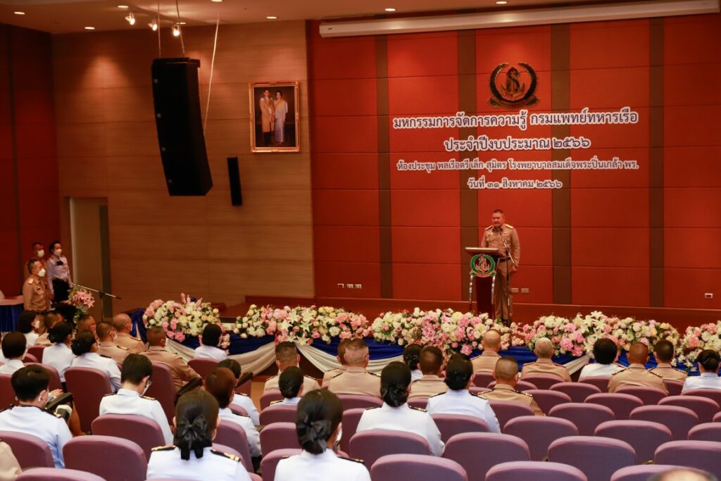 พลเรือโท ชลธร สุวรรณกิตติ เจ้ากรมแพทย์ทหารเรือ เป็นประธานในพิธีเปิดโครงการมหกรรมการจัดการความรู้ กรมแพทย์ทหารเรือ เพื่อแลกเปลี่ยนเรียนรู้ผลงานแนวปฏิบัติที่เป็นเลิศ (Best Practice) ของหน่วยงานกรมแพทย์ทหารเรือ โดยมีผู้บังคับบัญชาและข้าราชการกรมแพทย์ทหารเรือ เข้าร่วมพิธีฯ ณ ห้องประชุมพลเรือตรี เล็ก สุมิตร อาคารพิเคราะห์และบำบัดโรค ชั้น ๕ โรงพยาบาลสมเด็จพระปิ่นเกล้ากรมแพทย์ทหารเรือ เมื่อวันที่ ๓๑ สิงหาคม พ.ศ.๒๕๖๖