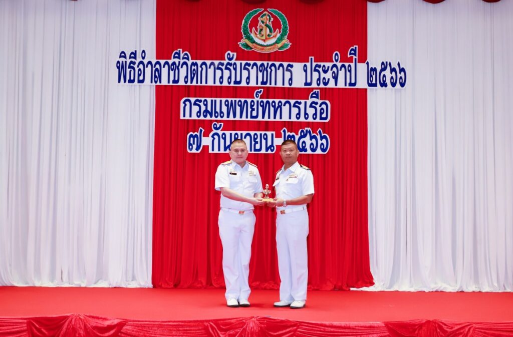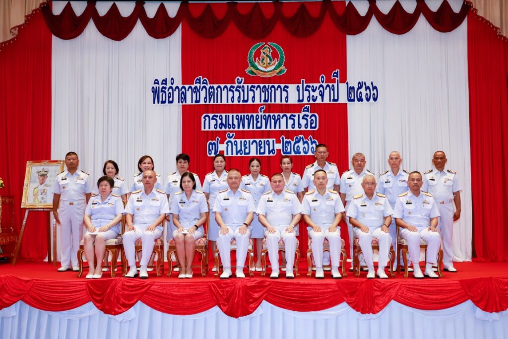 พลเรือโท ชลธร สุวรรณกิตติ เจ้ากรมแพทย์ทหารเรือ เป็นประธานในพิธีอำลาชีวิตรับราชการผู้ครบเกษียณอายุราชการ และผู้ขอลาออกจากราชการตามโครงการเกษียณอายุราชการก่อนกำหนด ประจำปี ๒๕๖๖ (พื้นที่สัตหีบ) โดยมีผู้บังคับบัญชาและข้าราชการกรมแพทย์ทหารเรือ เข้าร่วมพิธีฯ ณ ห้องภูหลวง โรงพยาบาลสมเด็จพระนางเจ้าสิริกิติ์กรมแพทย์ทหารเรือ เมื่อวันที่ ๗ กันยายน พ.ศ.๒๕๖๖