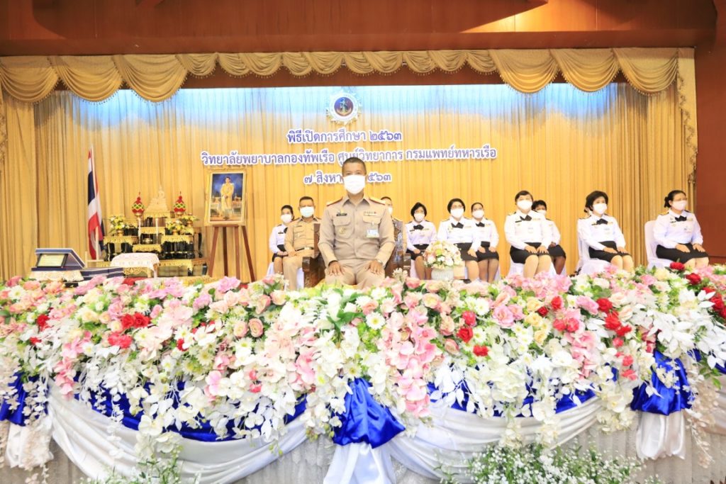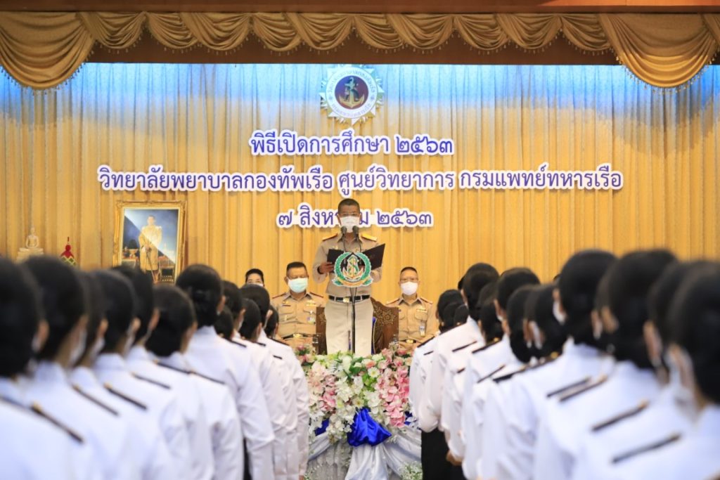 พลเรือโท วิชัย มนัสศิริวิทยา เจ้ากรมแพทย์ทหารเรือ เป็นประธานในพิธีเปิดการศึกษา ประจำปีการศึกษา ๒๕๖๓ วิทยาลัยพยาบาลกองทัพเรือ ศูนย์วิทยาการ กรมแพทย์ทหารเรือ โดยมี พลเรือตรี สุมิตร แดงดีเลิศ รองเจ้ากรมแพทย์ทหารเรือ พลเรือตรี ธนรักษ์ เอี่ยวสานุรักษ์ ผู้อำนวยการโรงพยาบาลสมเด็จพระปิ่นเกล้า กรมแพทย์ทหารเรือ และข้าราชการระดับสูงของกรมแพทย์ทหารเรือ เข้าร่วมพิธีฯ ณ ห้องปิ่นเกล้า สโมสรกรมแพทย์ทหารเรือ เมื่อวันที่ ๗ สิงหาคม พ.ศ.๒๕๖๓