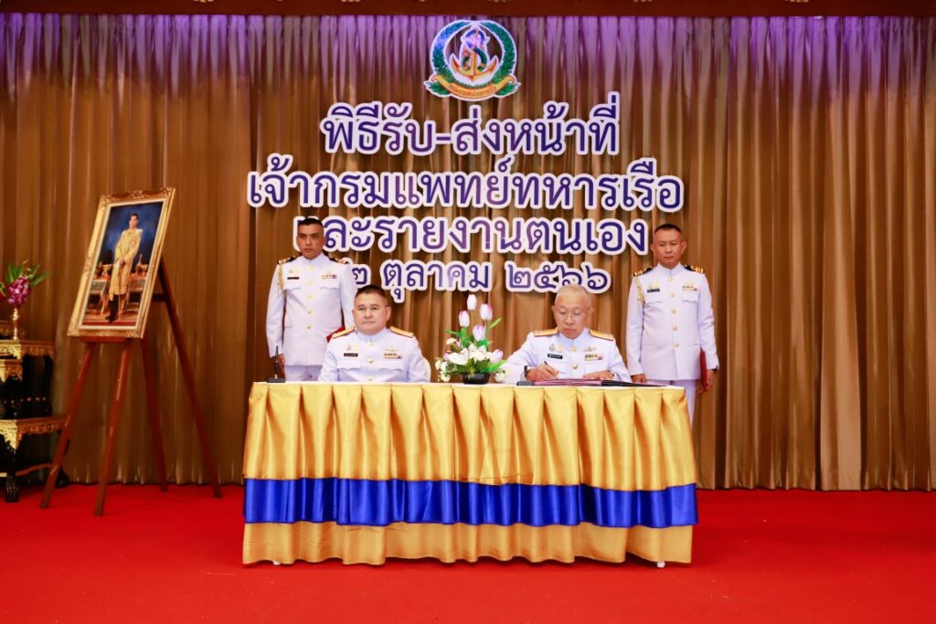 พลเรือโท ชลธร สุวรรณกิตติ ส่งมอบหน้าที่เจ้ากรมแพทย์ทหารเรือและการบังคับบัญชาให้ พลเรือโท ณัฐ อิศรางกูร ณ อยุธยา โดยมีผู้บังคับบัญชา หัวหน้าหน่วยขึ้นตรงกรมแพทย์ทหารเรือ และข้าราชการกรมแพทย์ทหารเรือ เข้าร่วมพิธีฯ ณ ห้องปิ่นเกล้า สโมสรกรมแพทย์ทหารเรือ เมื่อวันที่ ๒ ตุลาคม พ.ศ.๒๕๖๖