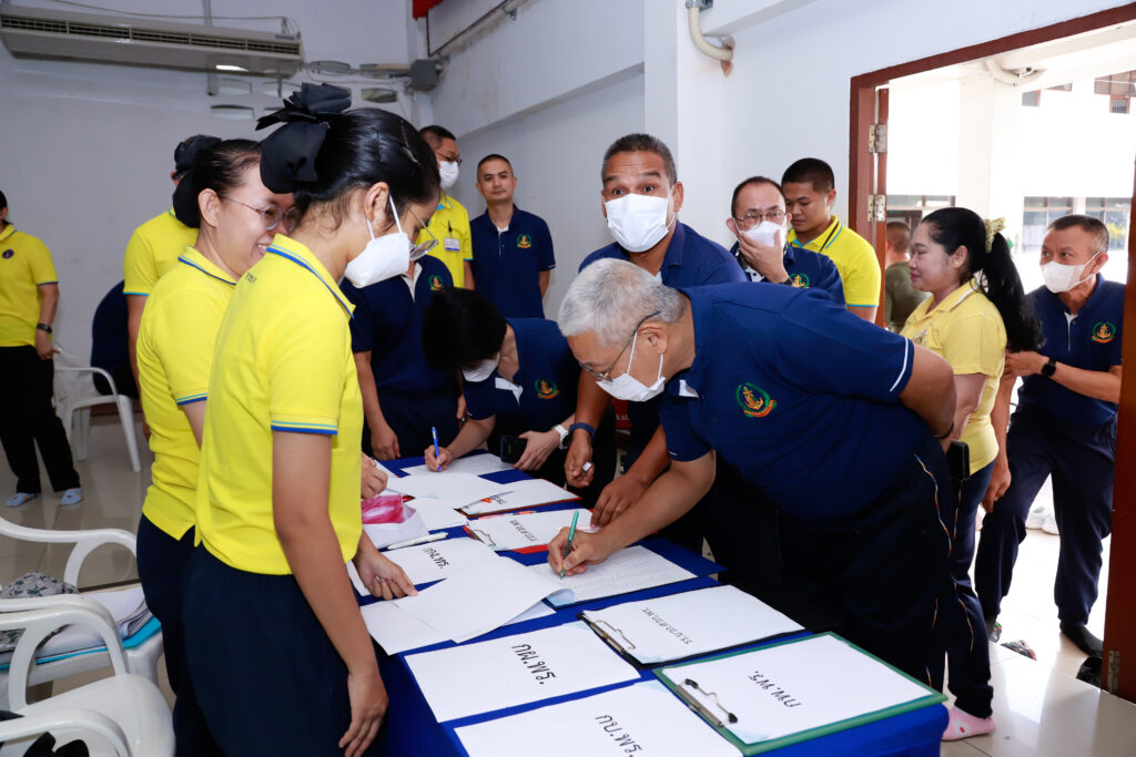 พลเรือโท ณัฐ อิศรางกูร ณ อยุธยา เจ้ากรมแพทย์ทหารเรือ เข้าร่วมทดสอบสมรรถภาพทางกาย ครั้งที่ ๑ ประจำปีงบประมาณ ๒๕๖๗ จัดโดย กองเวชกรรมป้องกัน กรมแพทย์ทหารเรือ โดยมี ข้าราชการกรมแพทย์ทหารเรือ เข้าร่วมทดสอบฯ ณ ห้องประชุม โรงเรียนนาวิกเวชกิจ ศูนย์วิทยาการ กรมแพทย์ทหารเรือ เมื่อ ๑๓ พฤศจิกายน ๒๕๖๖