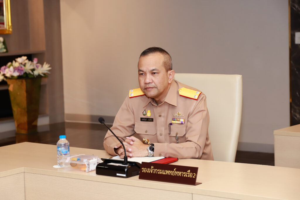 พลเรือโท ณัฐ อิศรางกูร ณ อยุธยา เจ้ากรมแพทย์ทหารเรือ และคณะ ตรวจเยี่ยม โรงพยาบาลสมเด็จพระปิ่นเกล้า กรมแพทย์ทหารเรือ เพื่อรับทราบภารกิจ แผนการดำเนินงาน ผลการปฏิบัติงาน ปัญหาข้อขัดข้อง และเพื่อเป็นขวัญกำลังใจให้แก่กำลังพล โดยมี พลเรือตรี วสุธา ข่ายแก้ว ผู้อำนวยการโรงพยาบาลสมเด็จพระปิ่นเกล้า กรมแพทย์ทหารเรือ และ ข้าราชการ รพ.ฯ รับการตรวจเยี่ยมฯ ณ ห้องประชุมกรมแพทย์ทหารเรือ ๓ อาคารกองบังคับการกรมแพทย์ทหารเรือ ชั้น ๓ เมื่อวันที่ ๑๗ พฤศจิกายน ๒๕๖๖