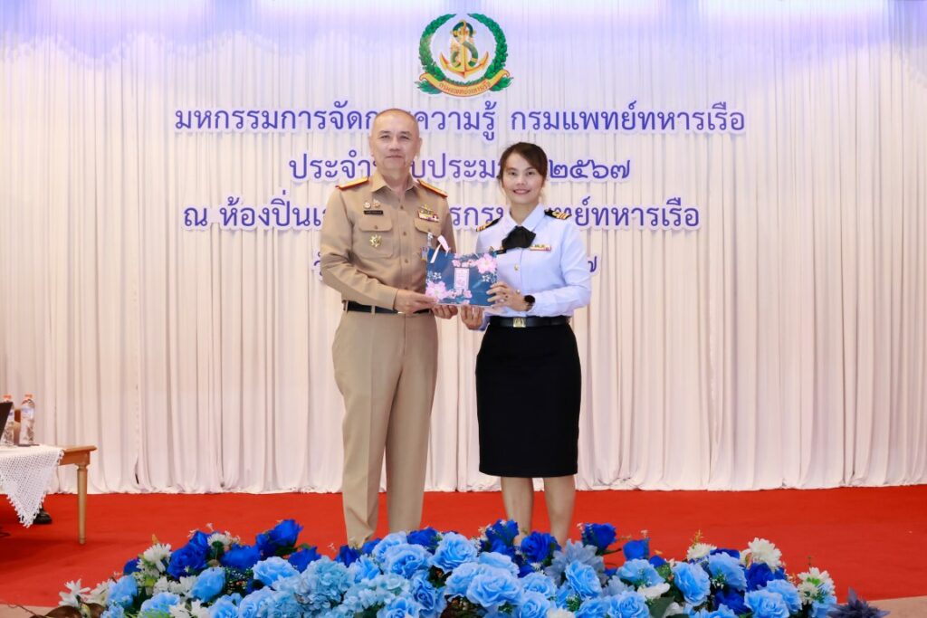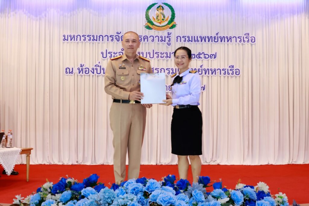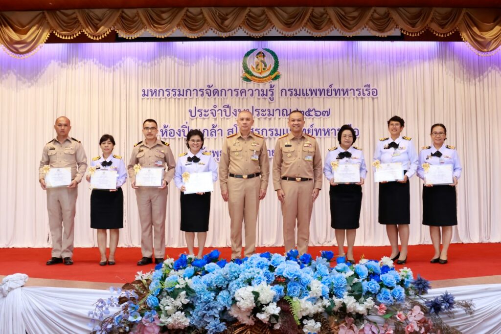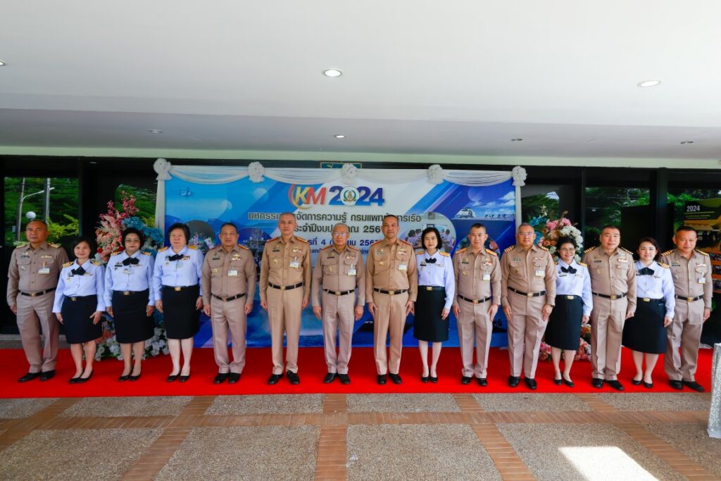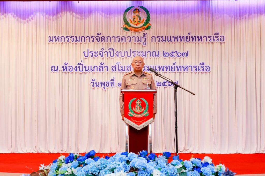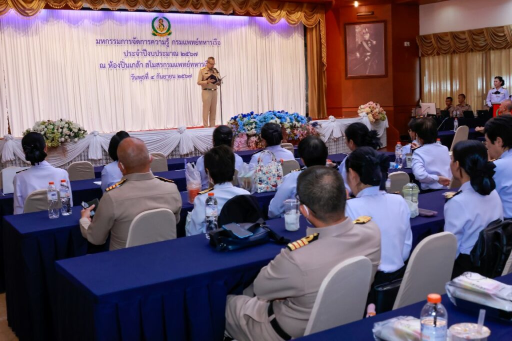 พลเรือโท ณัฐ อิศรางกูร ณ อยุธยา เจ้ากรมแพทย์ทหารเรือ เป็นประธานในพิธีเปิดโครงการมหกรรมการจัดการความรู้กรมแพทย์ทหารเรือ ประจำปีงบประมาณ ๒๕๖๗ เพื่อเป็นการแลกเปลี่ยนเรียนรู้ผลงานแนวปฏิบัติที่เป็นเลิศ (Best Practice) ของหน่วยงานกรมแพทย์ทหารเรือ และในโอกาสนี้ พลเรือตรี กิตตินันท์ งามศิลป์ เป็นประธานในพิธีปิดโครงการฯ โดยมีผู้บังคับบัญชา และข้าราชการกรมแพทย์ทหารเรือ เข้าร่วมพิธีเปิด-ปิด โครงการฯ ณ ห้องปิ่นเกล้า สโมสรกรมแพทย์ทหารเรือ เมื่อวันที่ ๔ กันยายน พ.ศ.๒๕๖๗