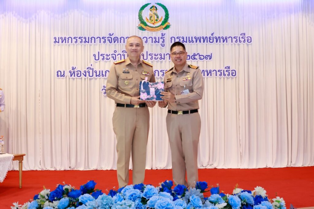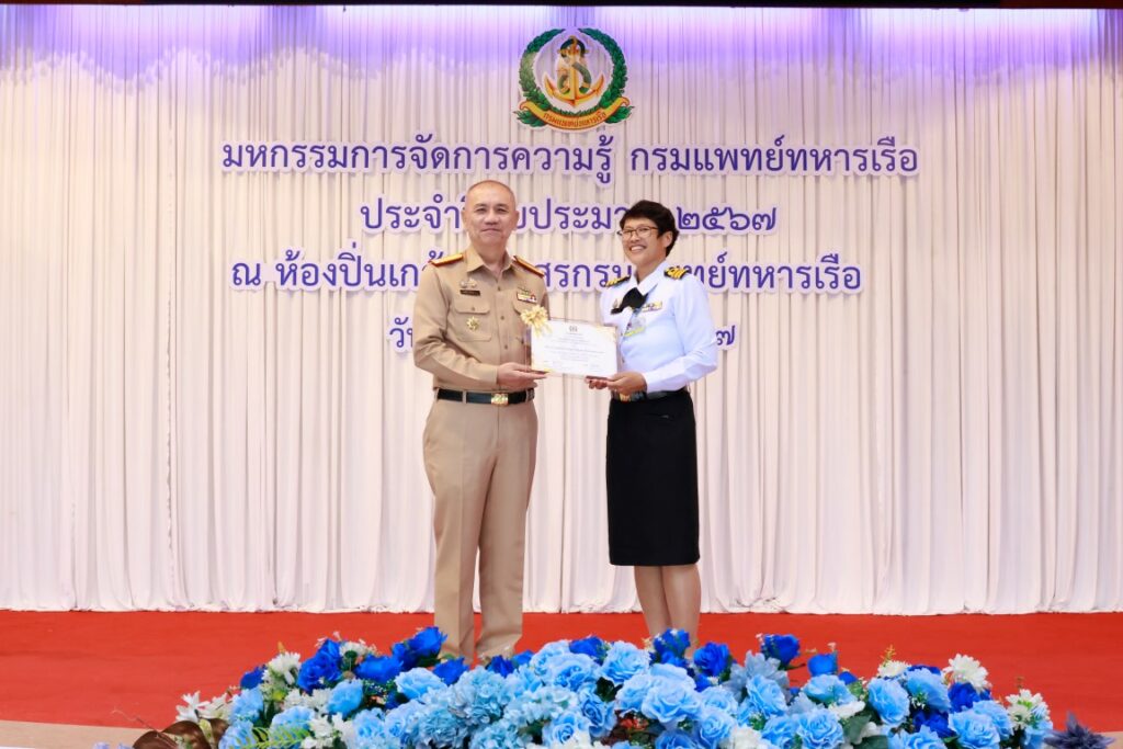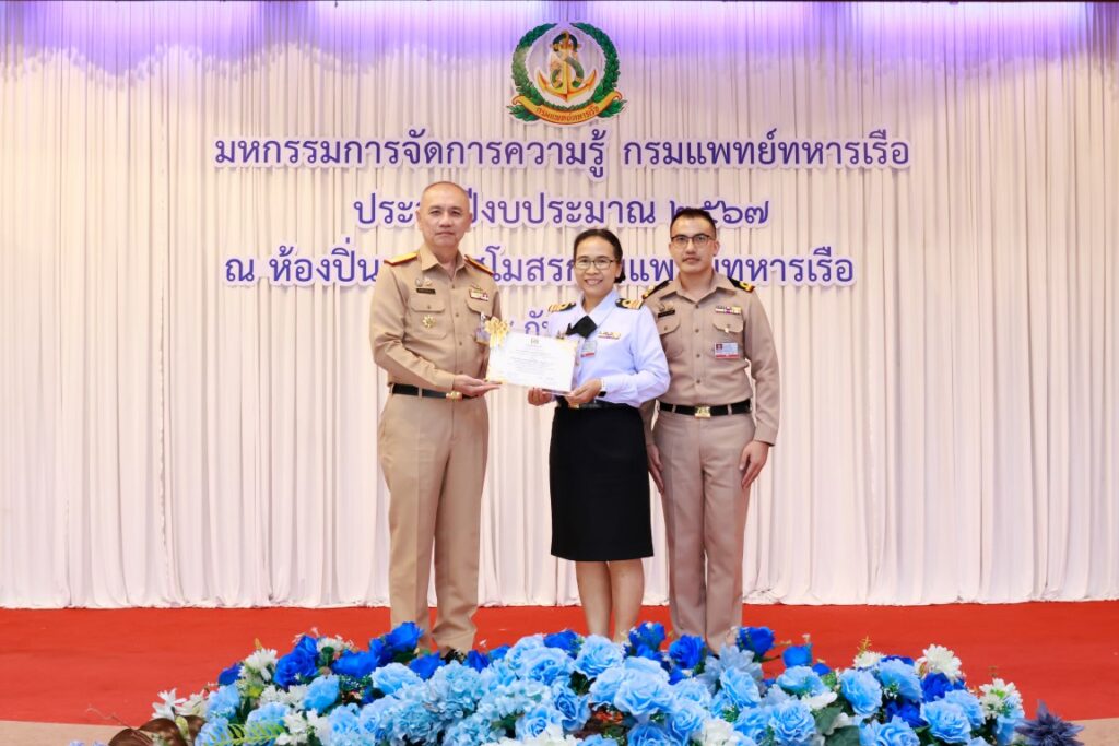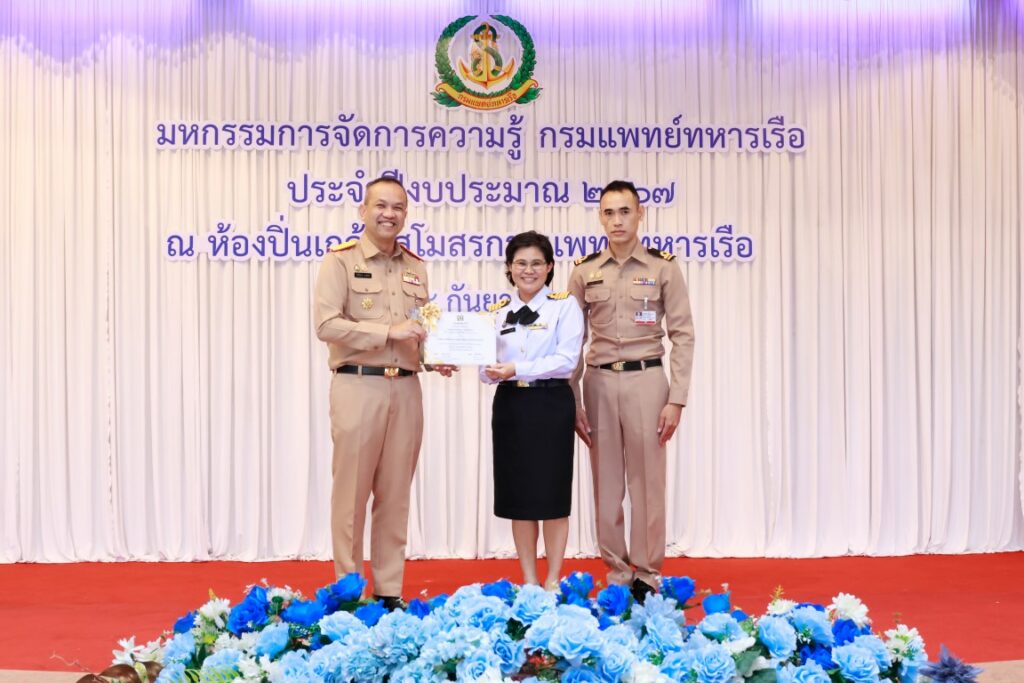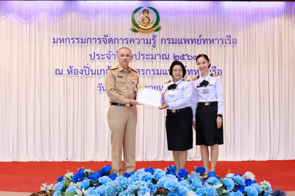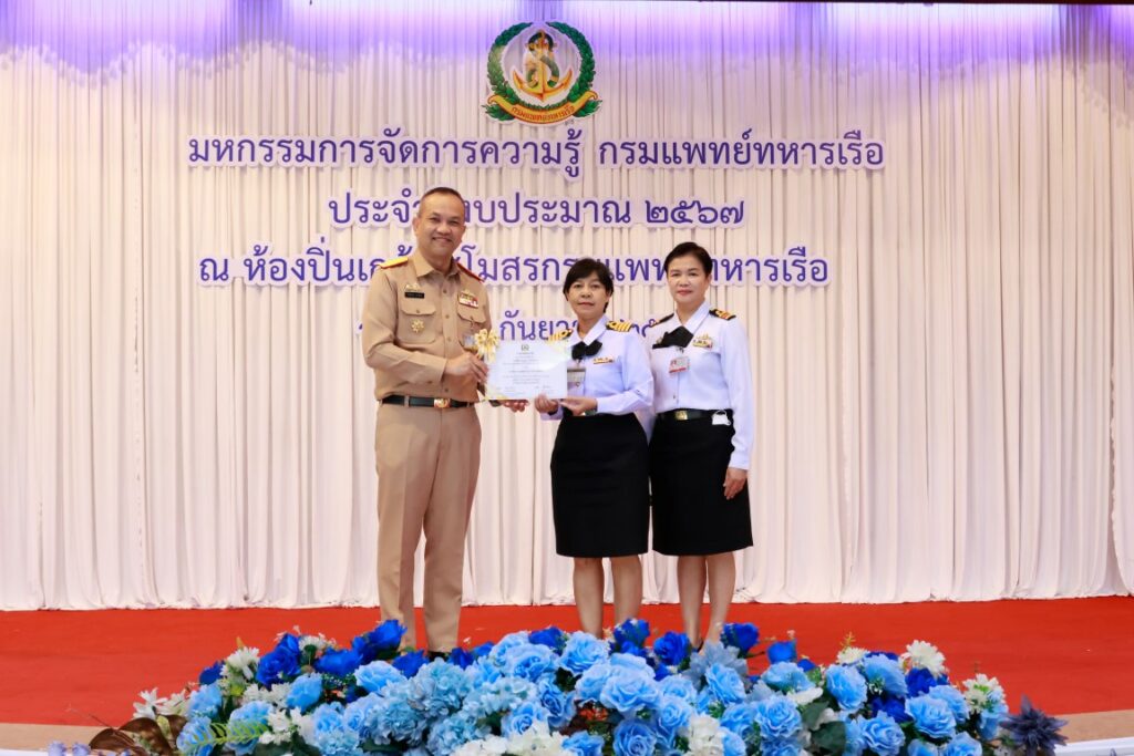 พลเรือโท ณัฐ อิศรางกูร ณ อยุธยา เจ้ากรมแพทย์ทหารเรือ เป็นประธานในพิธีเปิดโครงการมหกรรมการจัดการความรู้กรมแพทย์ทหารเรือ ประจำปีงบประมาณ ๒๕๖๗ เพื่อเป็นการแลกเปลี่ยนเรียนรู้ผลงานแนวปฏิบัติที่เป็นเลิศ (Best Practice) ของหน่วยงานกรมแพทย์ทหารเรือ และในโอกาสนี้ พลเรือตรี กิตตินันท์ งามศิลป์ เป็นประธานในพิธีปิดโครงการฯ โดยมีผู้บังคับบัญชา และข้าราชการกรมแพทย์ทหารเรือ เข้าร่วมพิธีเปิด-ปิด โครงการฯ ณ ห้องปิ่นเกล้า สโมสรกรมแพทย์ทหารเรือ เมื่อวันที่ ๔ กันยายน พ.ศ.๒๕๖๗