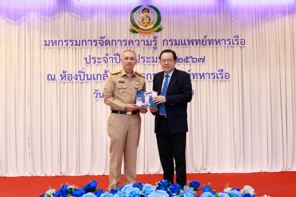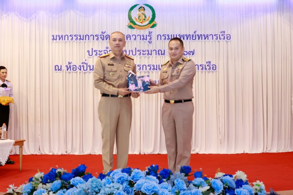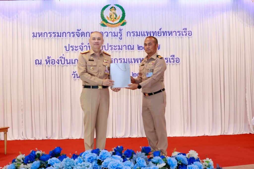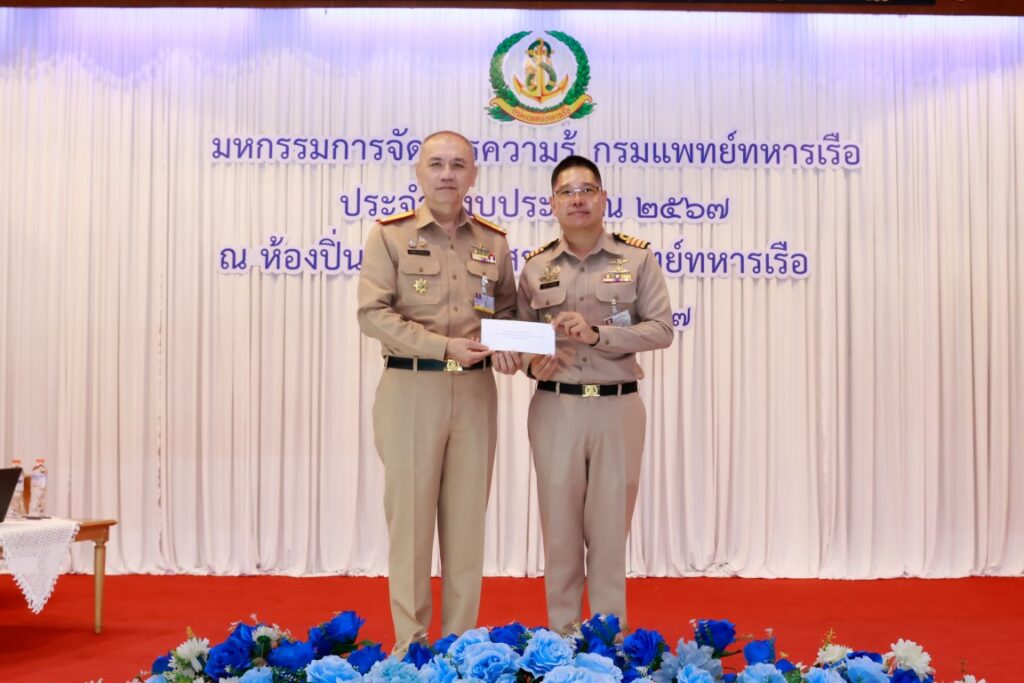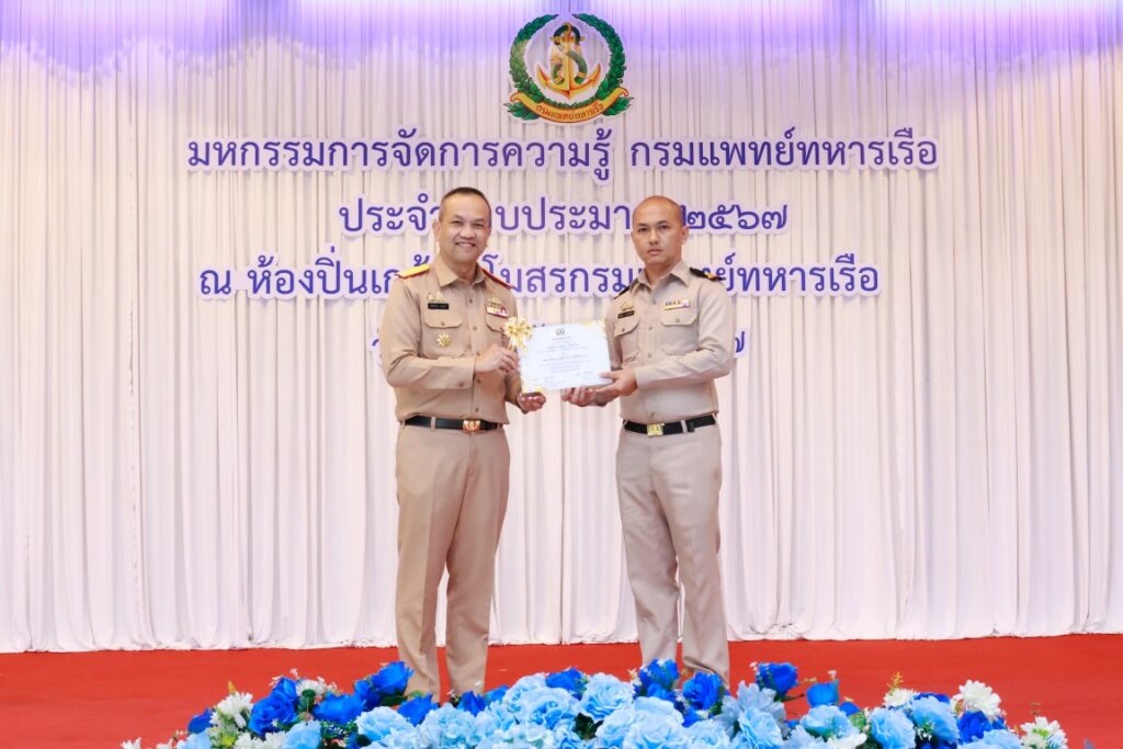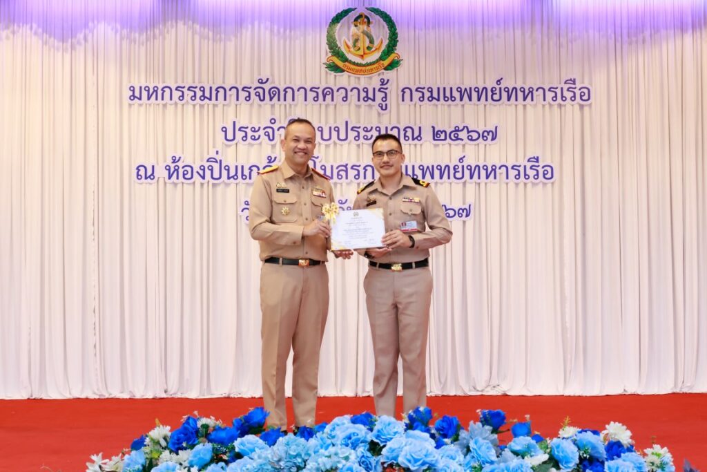 พลเรือโท ณัฐ อิศรางกูร ณ อยุธยา เจ้ากรมแพทย์ทหารเรือ เป็นประธานในพิธีเปิดโครงการมหกรรมการจัดการความรู้กรมแพทย์ทหารเรือ ประจำปีงบประมาณ ๒๕๖๗ เพื่อเป็นการแลกเปลี่ยนเรียนรู้ผลงานแนวปฏิบัติที่เป็นเลิศ (Best Practice) ของหน่วยงานกรมแพทย์ทหารเรือ และในโอกาสนี้ พลเรือตรี กิตตินันท์ งามศิลป์ เป็นประธานในพิธีปิดโครงการฯ โดยมีผู้บังคับบัญชา และข้าราชการกรมแพทย์ทหารเรือ เข้าร่วมพิธีเปิด-ปิด โครงการฯ ณ ห้องปิ่นเกล้า สโมสรกรมแพทย์ทหารเรือ เมื่อวันที่ ๔ กันยายน พ.ศ.๒๕๖๗