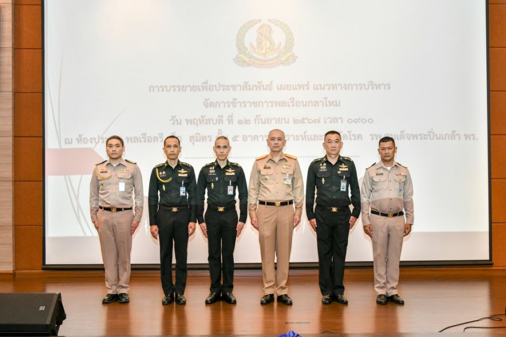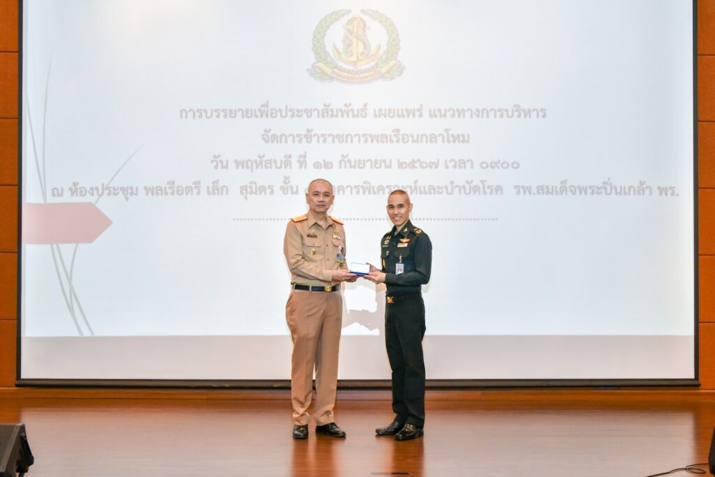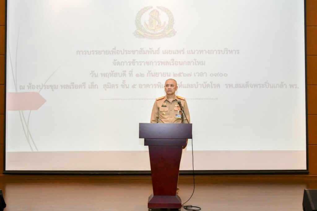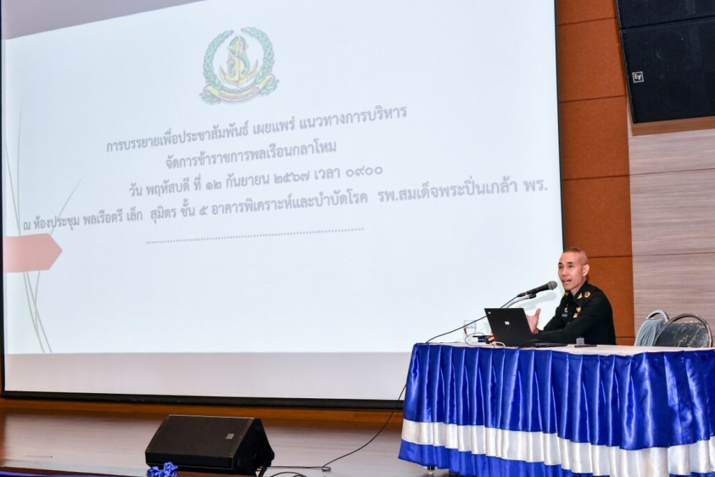 พลเรือตรี ประทีป ตังติสานนท์ รองเจ้ากรมแพทย์ทหารเรือ เป็นประธานในพิธีเปิดการบรรยายเพื่อประชาสัมพันธ์ เผยแพร่ แนวทางการบริหารจัดการข้าราชการพลเรือนกลาโหม โดยมีผู้บังคับบัญชา และข้าราชการกรมแพทย์ทหารเรือ เข้าร่วมพิธีฯ ณ ห้องประชุม พลเรือตรี เล็ก สุมิตร อาคารพิเคราะห์และบำบัดโรค ขั้น ๕ โรงพยาบาลสมเด็จพระปิ่นเกล้ากรมแพทย์ทหารเรือ เมื่อวันที่ ๑๒ กันยายน พ.ศ.๒๕๖๗