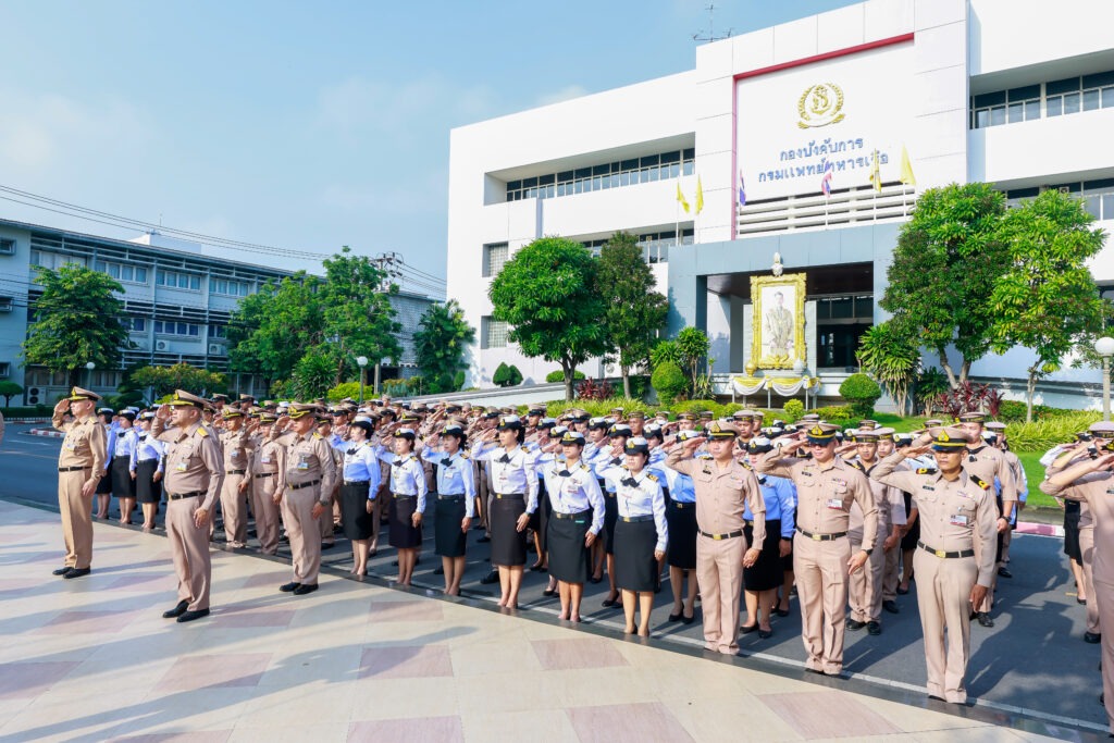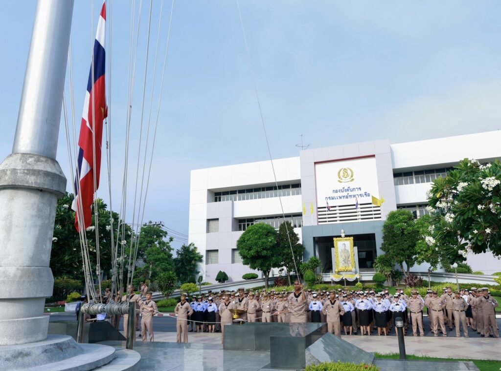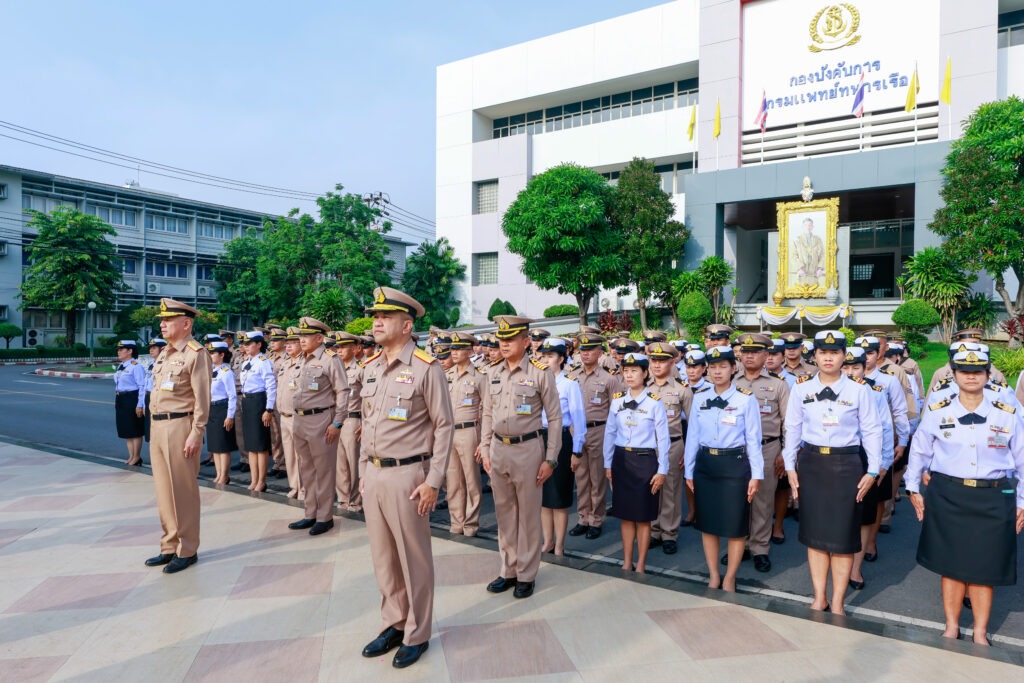 พลเรือตรี ประทีป ตังติสานนท์ รองเจ้ากรมแพทย์ทหารเรือ พลเรือตรี กิตตินันท์ งามศิลป์ รองเจ้ากรมแพทย์ทหารเรือ พร้อมด้วย ข้าราชการกรมแพทย์ทหารเรือ เข้าร่วมพิธีพระราชทานธงชาติไทย ประจำปี ๒๕๖๗ ณ บริเวณหน้าเสาธง อาคารกองบังคับการ กรมแพทย์ทหารเรือ เมื่อวันที่ ๒๗ กันยายน ๒๕๖๗