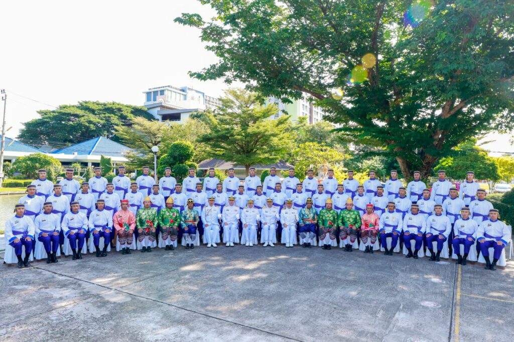 พลเรือโท ณัฐ อิศรางกูร ณ อยุธยา เจ้ากรมแพทย์ทหารเรือ พลเรือตรี ประทีป ตังติสานนท์ รองเจ้ากรมแพทย์ทหารเรือ พลเรือตรี กิตตินันท์ งามศิลป์ รองเจ้ากรมแพทย์ทหารเรือ ถ่ายภาพร่วมกับกำลังพลฝีพายของกรมแพทย์ทหารเรือ ณ บริเวณหน้าโรงเรียนนาวิกเวชกิจ ศูนย์วิทยาการ กรมแพทย์ทหารเรือ เมื่อวันที่ ๓๐ กันยายน พ.ศ.๒๕๖๗
