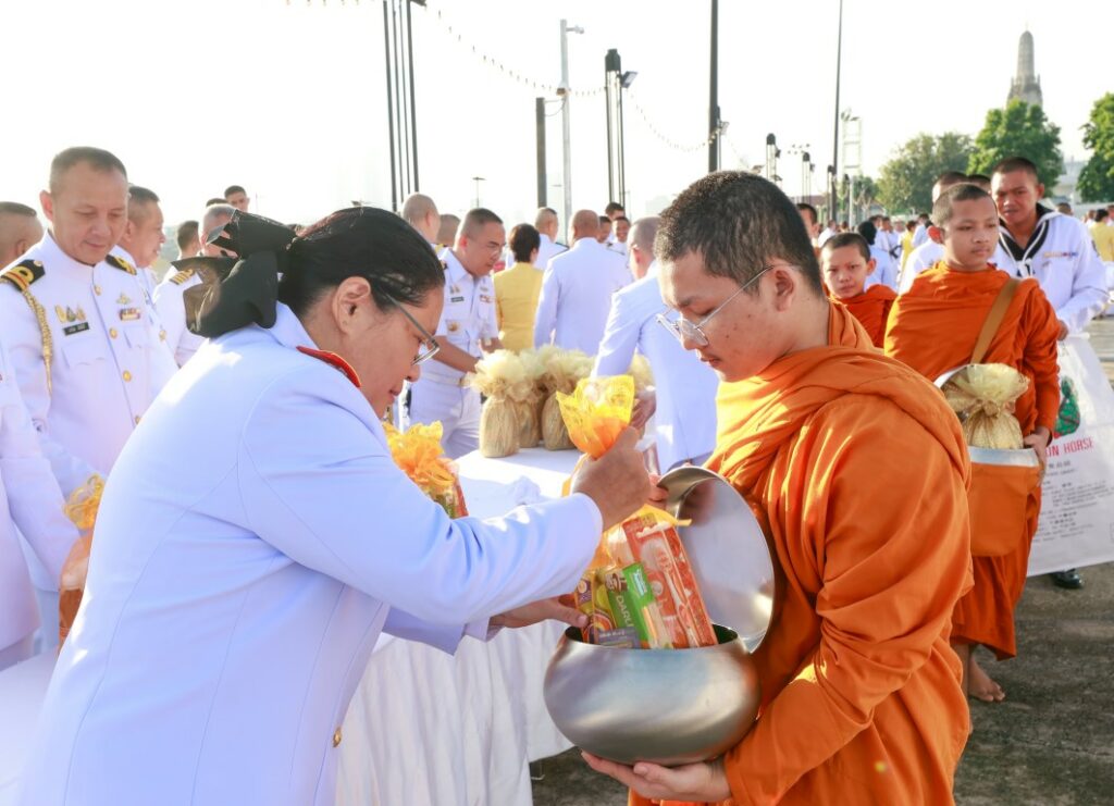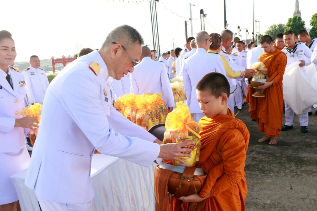พลเรือโท ประทีป ตังติสานนท์ เจ้ากรมแพทย์ทหารเรือ ร่วมพิธีทำบุญตักบาตรพระภิกษุสามเณร เนื่องในวันคล้ายวันสวรรคตพระบาทสมเด็จพระบรมชนกาธิเบศร มหาภูมิพลอดุลยเดชมหาราช บรมนาถบพิตร “วันนวมินทรมหาราช” ๑๓ ตุลาคม ๒๕๖๗ โดยมีผู้บังคับบัญชา และข้าราชการกรมแพทย์ทหารเรือ เข้าร่วมพิธีฯ ณ บริเวณลานทัศนาภิรมย์ หอประชุมกองทัพเรือ เมื่อวันที่ ๑๑ ตุลาคม พ.ศ.๒๕๖๗