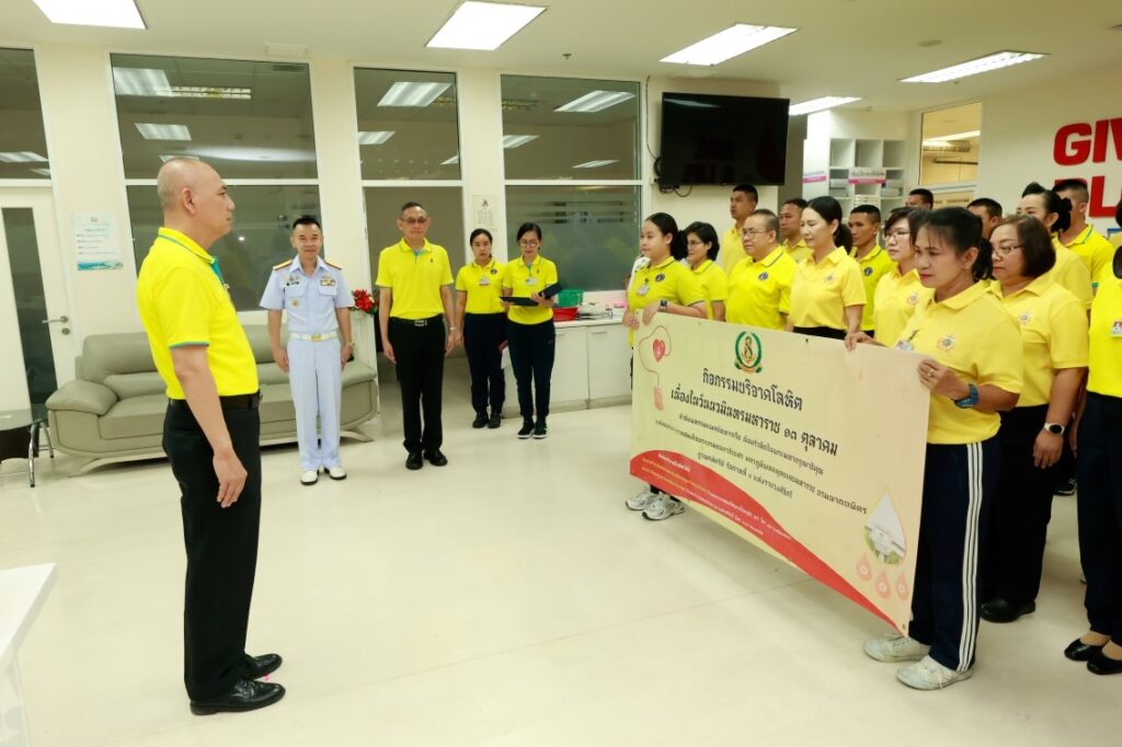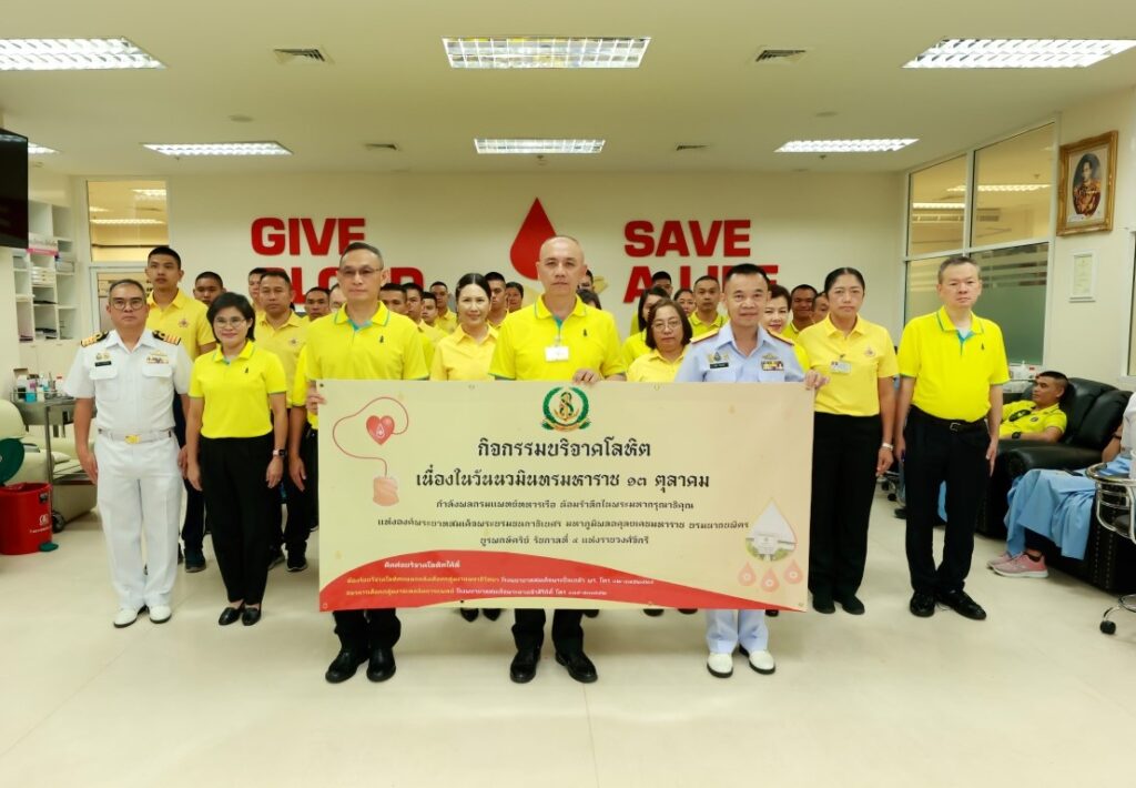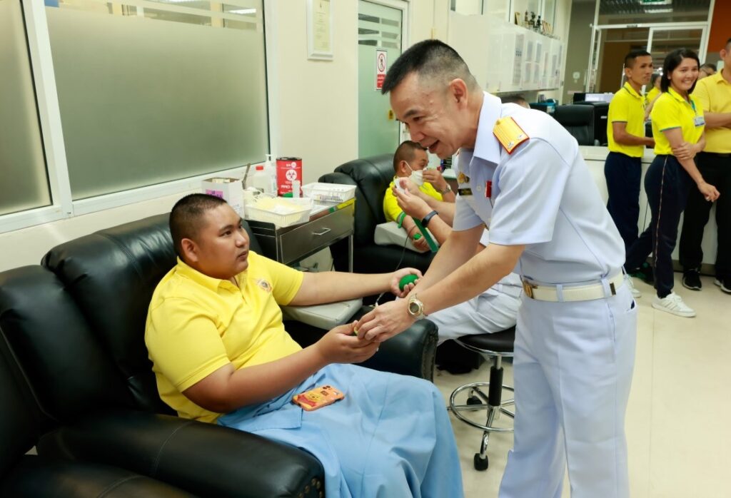 พลเรือโท ประทีป ตังติสานนท์ เจ้ากรมแพทย์ทหารเรือ เป็นประธานในกิจกรรมบริจาคโลหิต เนื่องในวันคล้ายวันสวรรคตพระบาทสมเด็จพระบรมชนกาธิเบศรมหาภูมิพลอดุลยเดชมหาราช บรมนาถบพิตร “วันนวมินทรมหาราช” ๑๓ ตุลาคม ๒๕๖๗ โดยมีผู้บังคับบัญชา ข้าราชการ ลูกจ้าง พนักงานราชการ ของกรมแพทย์ทหารเรือ เข้าร่วมกิจกรรมฯ ณ ห้องบริจาคโลหิต โรงพยาบาลสมเด็จพระปิ่นเกล้า กรมแพทย์ทหารเรือ เมื่อวันที่ ๑๑ ตุลาคม พ.ศ.๒๕๖๗