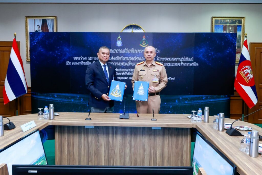 พลเรือเอก สมประสงค์ นิลสมัย อดีตผู้บัญชาการทหารเรือ/นายกสมาคมกีฬาแข่งเรือใบแห่งประเทศไทย ในพระบรมราชูปถัมภ์ พร้อมด้วย พลเรือโท ประทีป ตังติสานนท์ เจ้ากรมแพทย์ทหารเรือ ผู้แทนกองทัพเรือ ร่วมลงนามบันทึกความเข้าใจ (MOU) ว่าด้วยความร่วมมือด้านการวิจัยและนวัตกรรมทางการแพทย์ในการพัฒนากีฬาเรือใบและนักกีฬาเรือใบ ระหว่าง สมาคมแข่งกีฬาเรือใบแห่งประเทศไทย ในพระบรมราชูปถัมภ์ กับ โรงพยาบาลสมเด็จพระนางเจ้าสิริกิติ์ กรมแพทย์ทหารเรือ โดยมีผู้บังคับบัญชา และคณะผู้บริหารสมาคมกีฬาเรือใบแห่งประเทศไทยฯ ร่วมเป็นสักขีพยาน ณ ห้องประชุมนารายณ์ทรงสุบรรณ อาคาร ๕ กองทัพเรือ พระราชวังเดิม กรุงเทพฯ เมื่อวันที่ ๔ พฤศจิกายน พ.ศ.๒๕๖๗