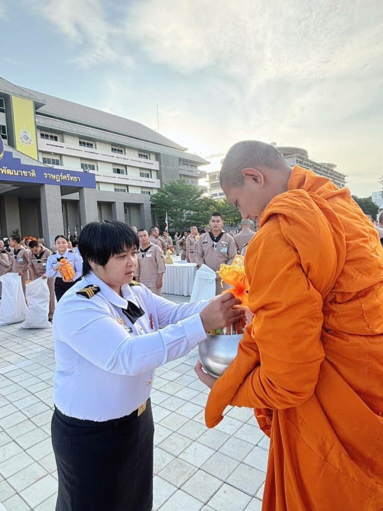 พลเรือตรี ปิยะวัฒน์ วงษ์วานิช ผู้ทรงคุณวุฒิกองทัพเรือ ผู้แทนเจ้ากรมแพทย์ทหารเรือ ร่วมพิธีทำบุญตักบาตรพระใหม่ที่บรรพชาอุปสมบท (นักเรียนนายเรือชั้นปีที่ ๕ ก่อนสำเร็จการศึกษา) เมื่อ ๑๒ ธ.ค.๖๗