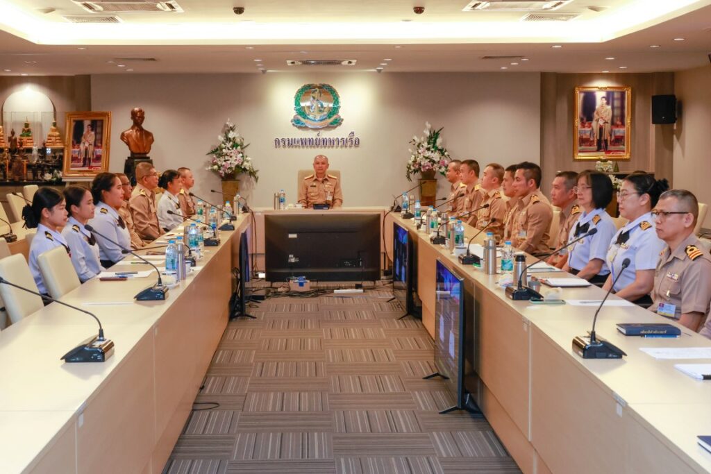 พลเรือโท ประทีป ตังติสานนท์ เจ้ากรมแพทย์ทหารเรือ ให้การต้อนรับ พลเรือตรี ชวิช วงษ์รัตน์ ผู้อำนวยการสำนักงานตรวจสอบภายในทหารเรือและคณะ เมื่อ ๒๗ ธ.ค.๖๗