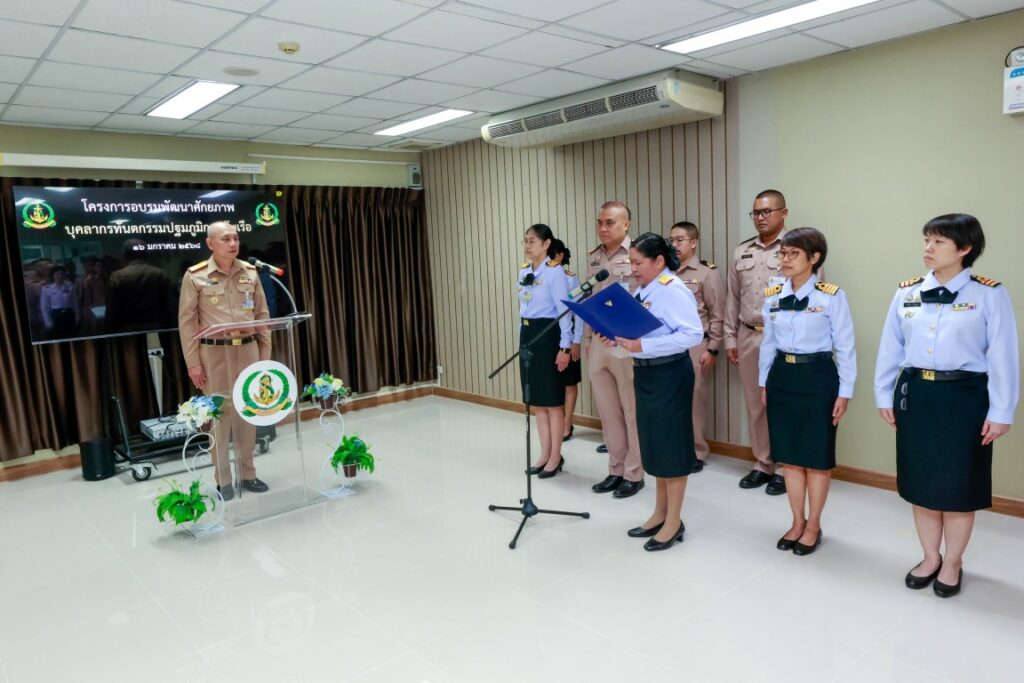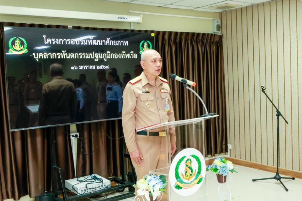 พลเรือโท ประทีป ตังติสานนท์ เจ้ากรมแพทย์ทหารเรือ เป็นประธานในพิธีเปิดอบรมโครงการพัฒนาศักยภาพบุคลากรทันตกรรมปฐมภูมิ กองทัพเรือ ปีงบประมาณ ๒๕๖๘ โดยมีผู้บังคับบัญชา และข้าราชการกรมแพทย์ทหารเรือ เข้าร่วมพิธีฯ ณ ห้องอบรม ชั้น ๑ อาคารศูนย์ทันตกรรม กรมแพทย์ทหารเรือ เมื่อวันที่ ๑๖ มกราคม พ.ศ.๒๕๖๘