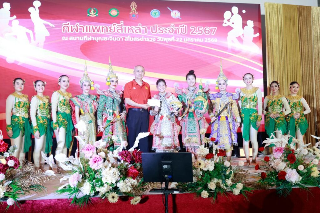 พลเรือโท ประทีป ตังติสานนท์ เจ้ากรมแพทย์ทหารเรือ ร่วมพิธีปิดกีฬา และงานเลี้ยงสังสรรค์แพทย์สี่เหล่า ประจำปี ๒๕๖๗ เมื่อ ๒๒ ม.ค.๖๘