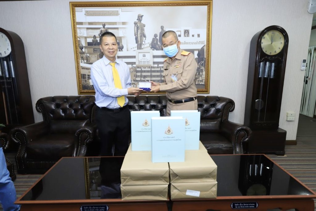 ๑๕ ต.ค.๖๓ พลเรือตรี สุรสิงห์ ประไพพานิช รองเจ้ากรมแพทย์ทหารเรือ รับมอบหนังสือประวัติศาสตร์การแพทย์และสาธารณสุขของประเทศไทย จากผู้แทนคณะแพทยศาสตร์จุฬาลงกรณ์มหาวิทยาลัย มอบให้กรมแพทย์ทหารเรือ