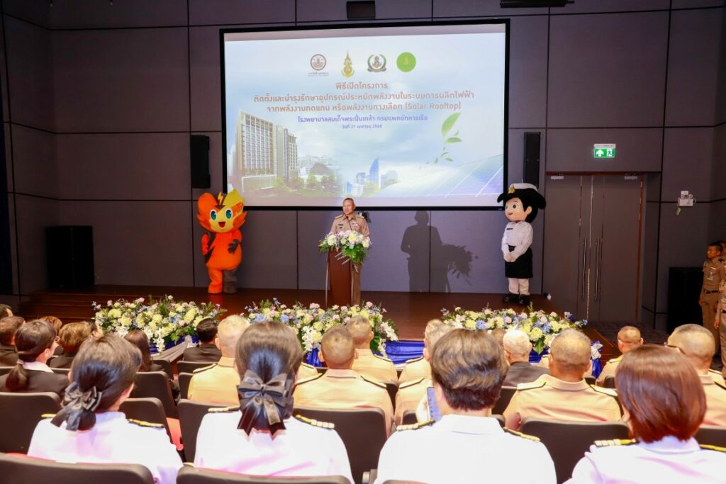พลเรือเอก จิรพล ว่องวิทย์ ผู้บัญชาการทหารเรือ เป็นประธานในพิธีเปิดโครงการติดตั้งและบำรุงรักษาอุปกรณ์ประหยัดพลังงานในระบบการผลิตไฟฟ้าจากพลังงานทดแทน หรือพลังงานทางเลือก (Solar Rooftop) โดยมี นายวิลาศ เฉลยสัตย์ ผู้ว่าการการไฟฟ้านครหลวง พลเรือโท ประทีป ตังติสานนท์ เจ้ากรมแพทย์ทหารเรือ อดีตเจ้ากรมแพทย์ทหารเรือ ผู้บังคับบัญชา ข้าราชการกองทัพเรือ ข้าราชการกรมแพทย์ทหารเรือ และเจ้าหน้าที่การไฟฟ้านครหลวง เข้าร่วมพิธีฯ ณ ห้องประชุมชั้น ๑๓ อาคารผู้ป่วยใน ๑๔ ชั้น โรงพยาบาลสมเด็จพระปิ่นเกล้า กรมแพทย์ทหารเรือ เมื่อวันที่ ๒๑ เมษายน พ.ศ.๒๕๖๘