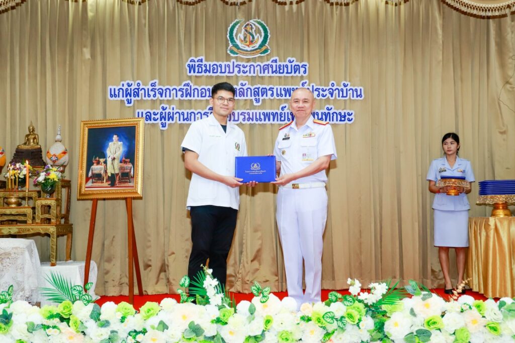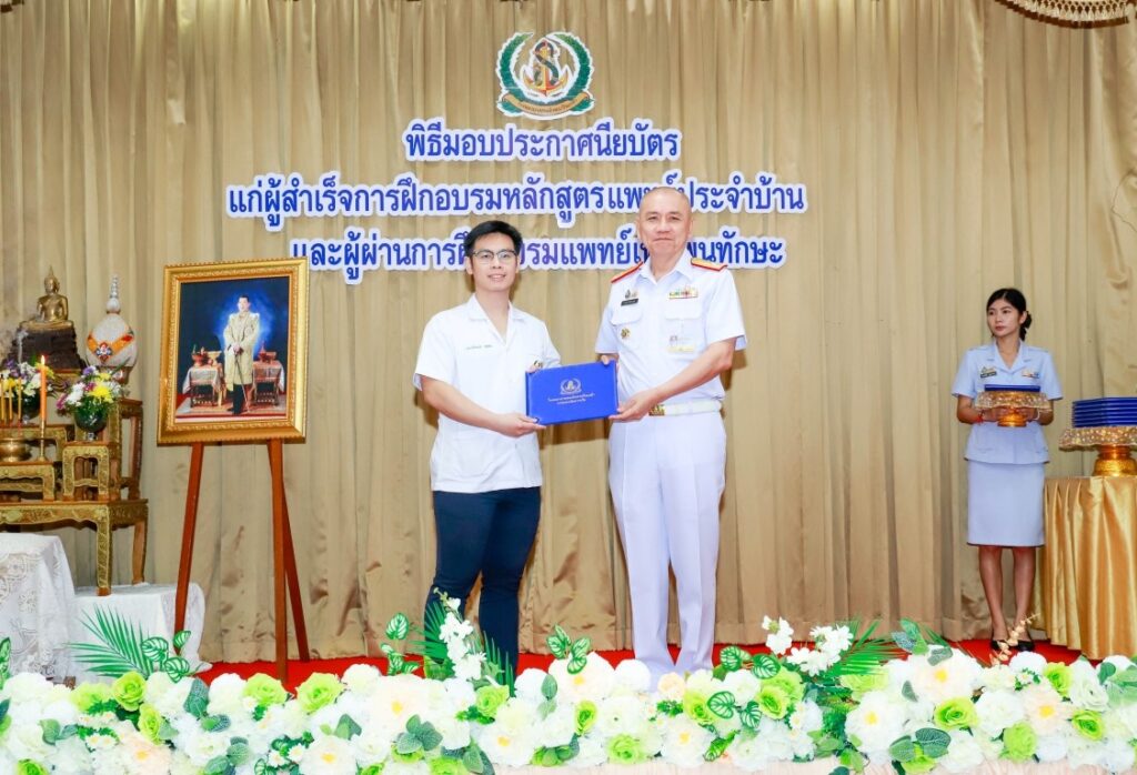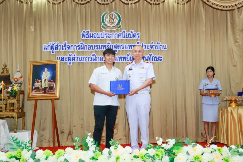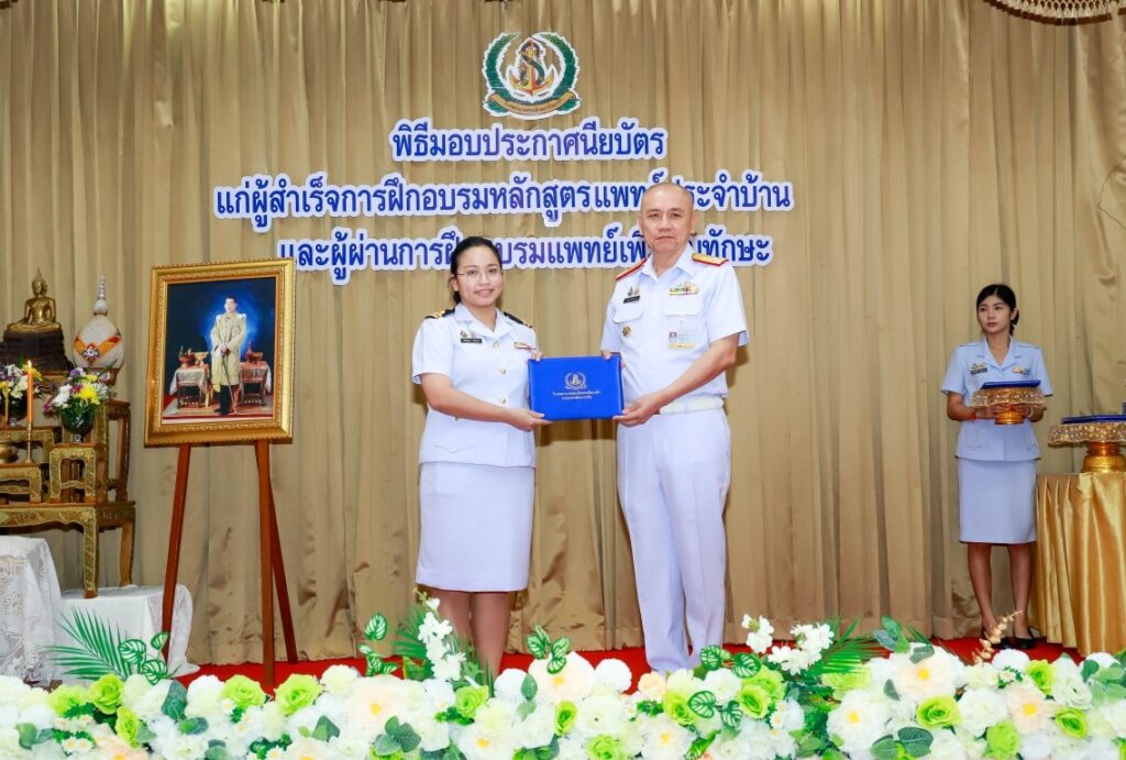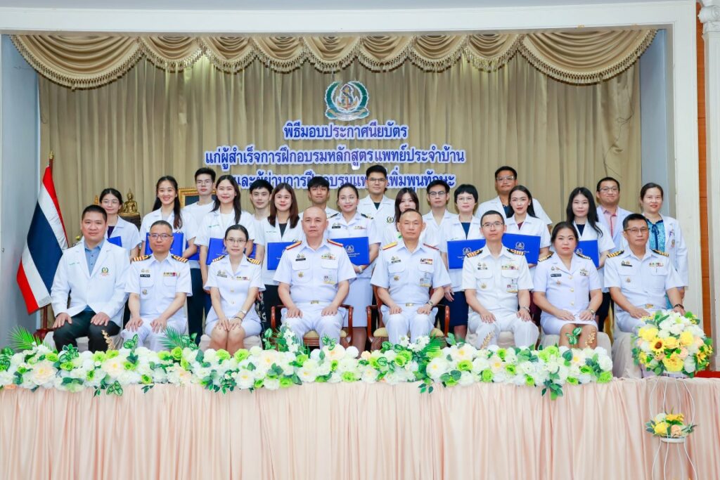 พลเรือโท ประทีป ตังติสานนท์ เจ้ากรมแพทย์ทหารเรือ เป็นประธานในพิธีมอบประกาศนียบัตรแก่ผู้สำเร็จการฝึกอบรมหลักสูตรแพทย์ประจำบ้านและผู้ผ่านการฝึกอบรมแพทย์เพิ่มพูนทักษะ โดยมี ผู้บังคับบัญชา และข้าราชการกรมแพทย์ทหารเรือ เข้าร่วมพิธีฯ ณ ห้องประชุมประพัฒน์ศรี สโมสรโรงพยาบาลสมเด็จพระปิ่นเกล้ากรมแพทย์ทหารเรือ เมื่อวันที่ ๒๓ มิถุนายน พ.ศ.๒๕๖๘