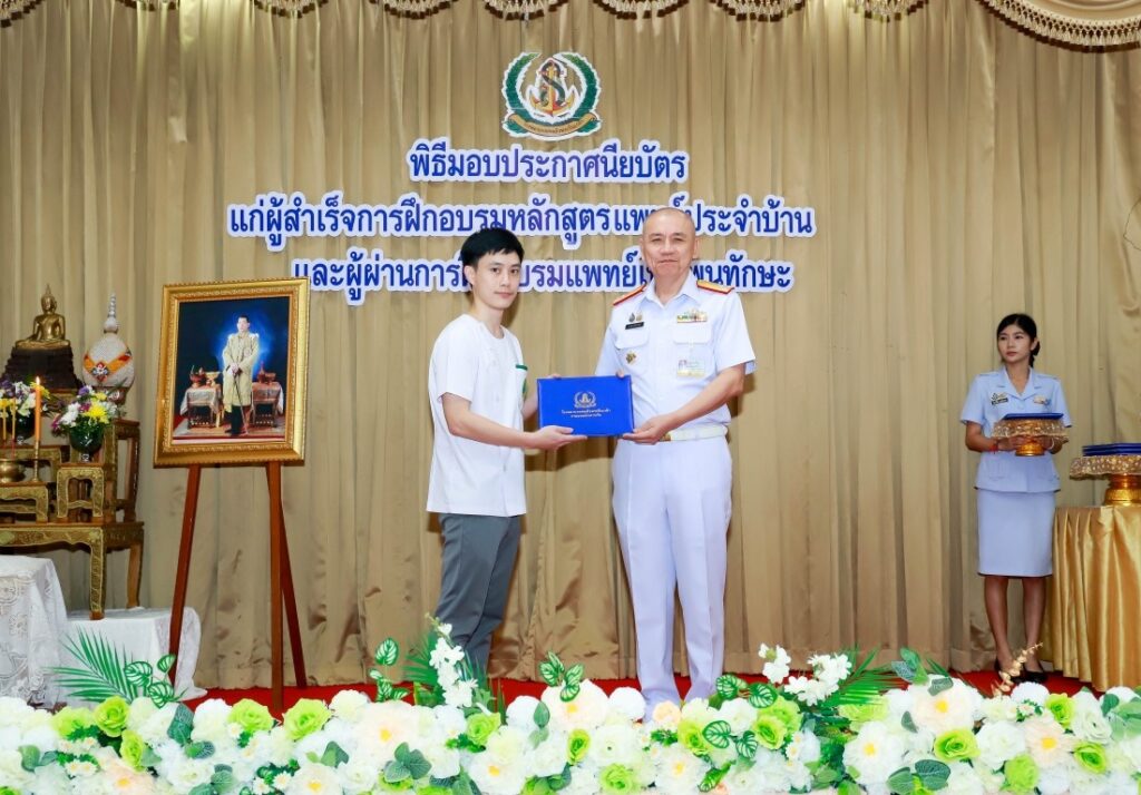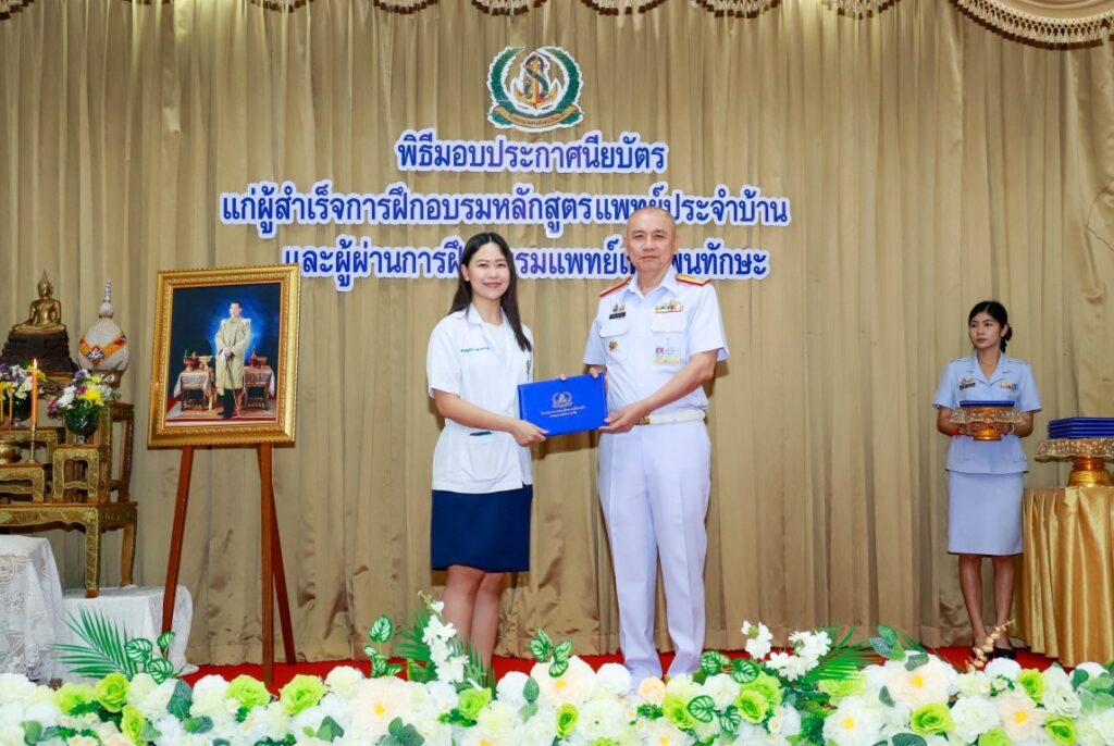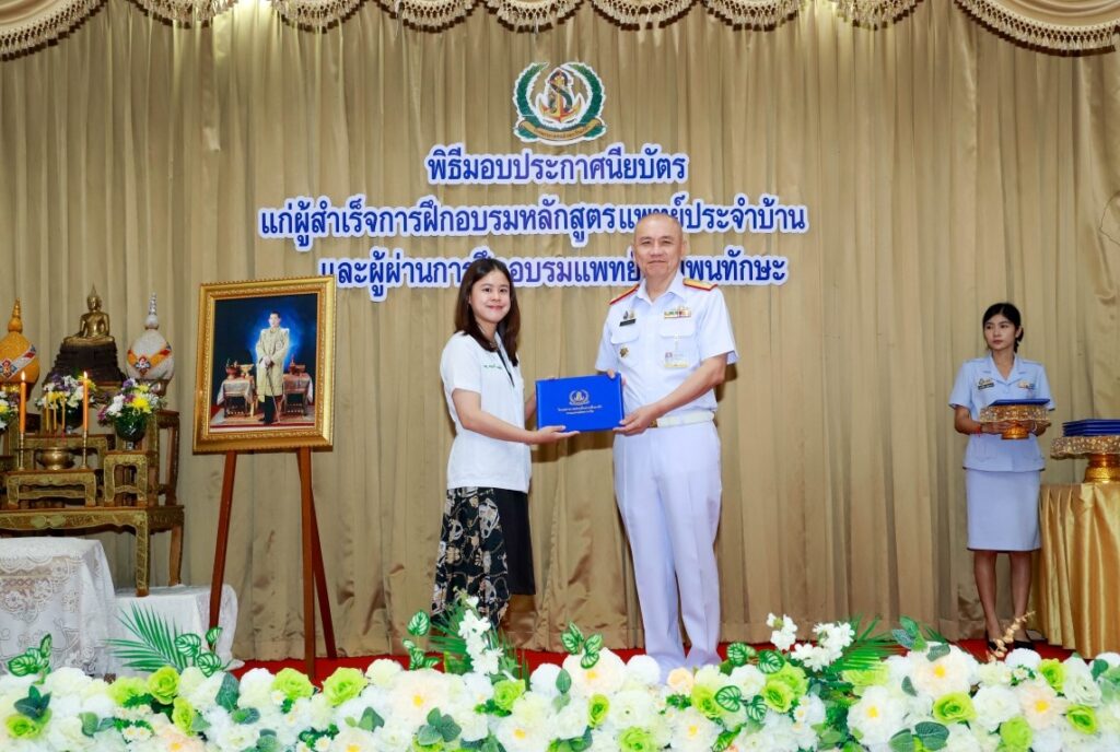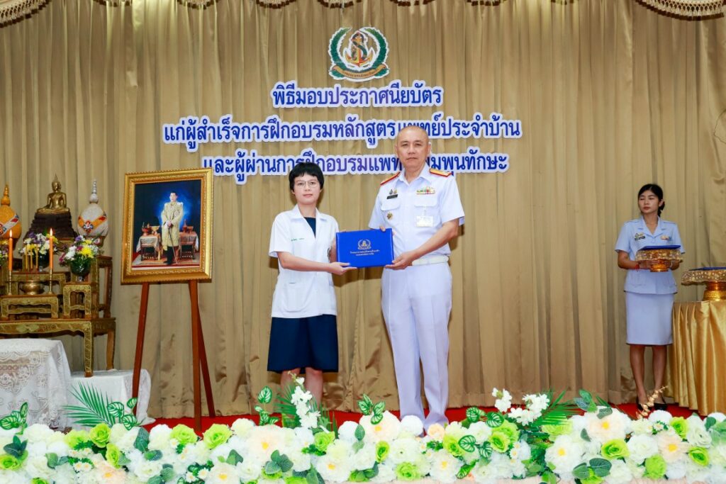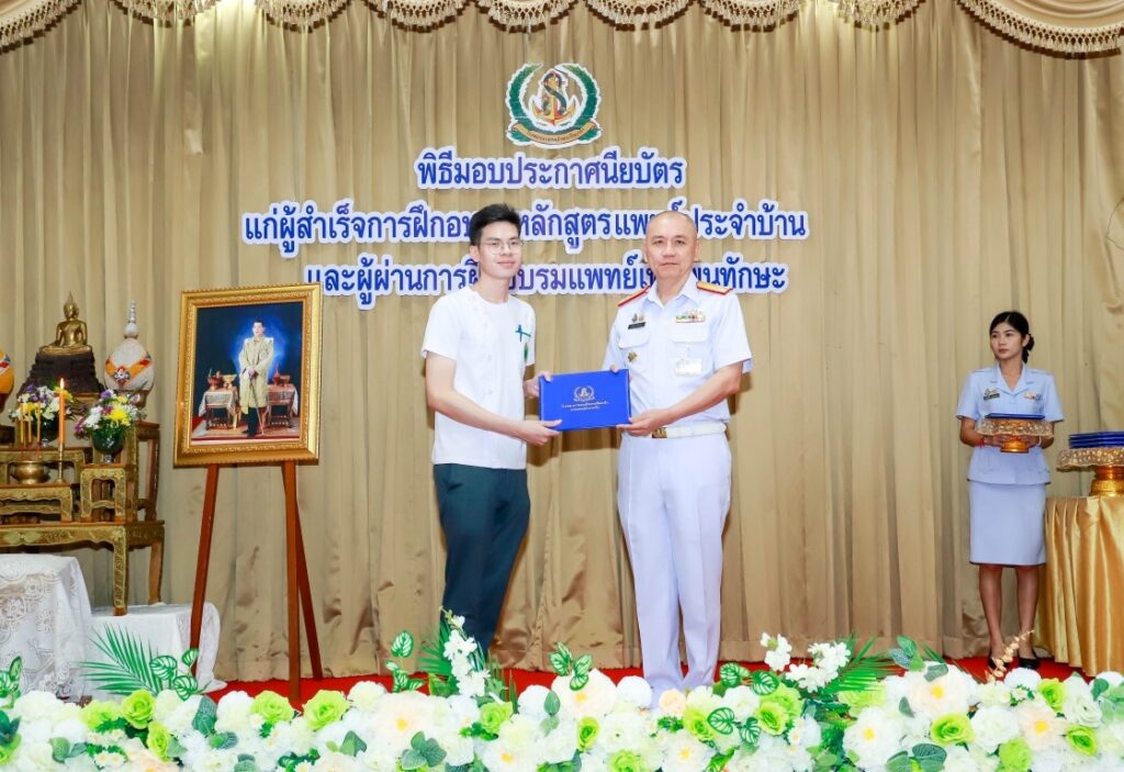 พลเรือโท ประทีป ตังติสานนท์ เจ้ากรมแพทย์ทหารเรือ เป็นประธานในพิธีมอบประกาศนียบัตรแก่ผู้สำเร็จการฝึกอบรมหลักสูตรแพทย์ประจำบ้านและผู้ผ่านการฝึกอบรมแพทย์เพิ่มพูนทักษะ โดยมี ผู้บังคับบัญชา และข้าราชการกรมแพทย์ทหารเรือ เข้าร่วมพิธีฯ ณ ห้องประชุมประพัฒน์ศรี สโมสรโรงพยาบาลสมเด็จพระปิ่นเกล้ากรมแพทย์ทหารเรือ เมื่อวันที่ ๒๓ มิถุนายน พ.ศ.๒๕๖๘