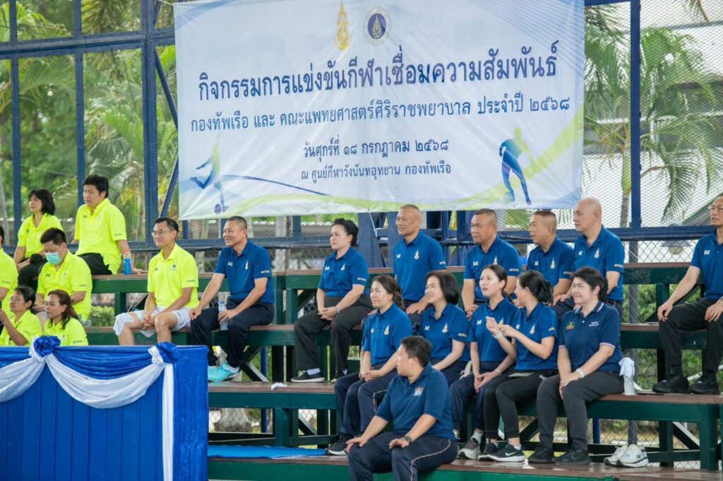พลเรือเอก จิรพล ว่องวิทย์ ผู้บัญชาการทหารเรือ และ ศาสตราจารย์ นายแพทย์ อภิชาติ อัศวมงคลกุล คณบดีคณะแพทยศาสตร์ศิริราชพยาบาล เป็นประธานร่วมเปิดกิจกรรม “การแข่งขันกีฬาเชื่อมความสัมพันธ์ ระหว่าง กองทัพเรือ และ คณะแพทย์ศาสตร์ศิริราชพยาบาล ประจำปี ๒๕๖๘” โดยมี พลเรือโท ประทีป ตังติสานนท์ เจ้ากรมแพทย์ทหารเรือ ผู้บังคับบัญชาและข้าราชการกรมแพทย์ทหารเรือ ร่วมพิธีเปิดฯ และร่วมกิจกรรมการแข่งขันกีฬาฯ ณ สนามกีฬาศูนย์กีฬาวังนันทอุทยานกองทัพเรือ เขตบางกอกน้อย กรุงเทพฯ เมื่อวันที่ ๑๘ กรกฎาคม พ.ศ.๒๕๖๘