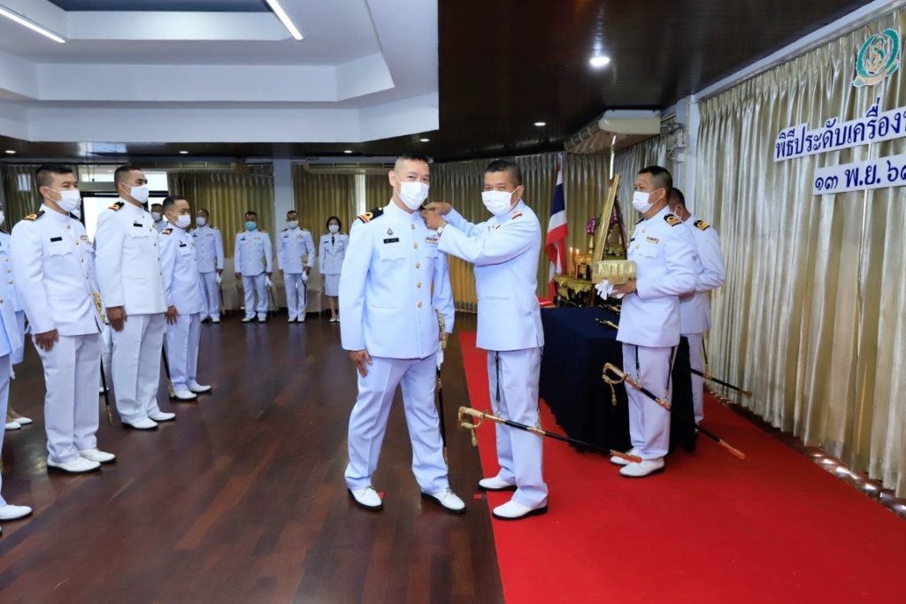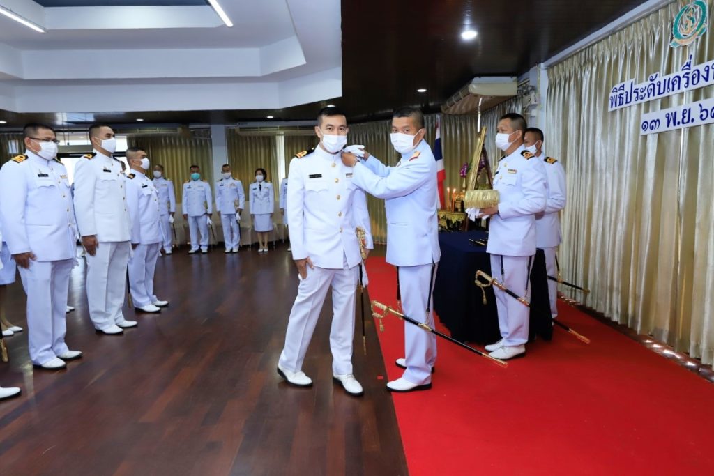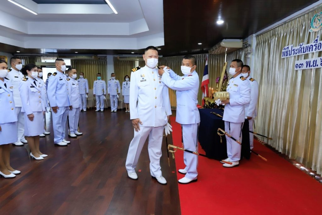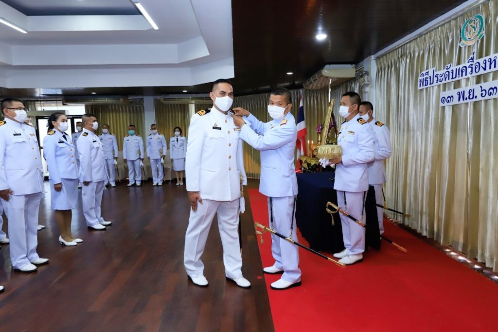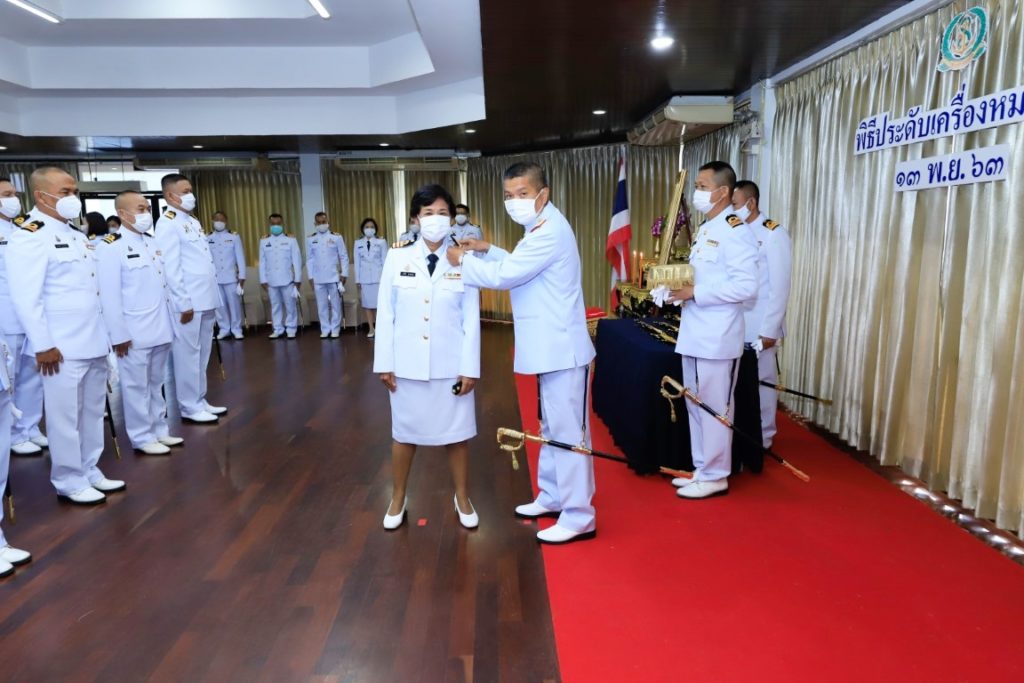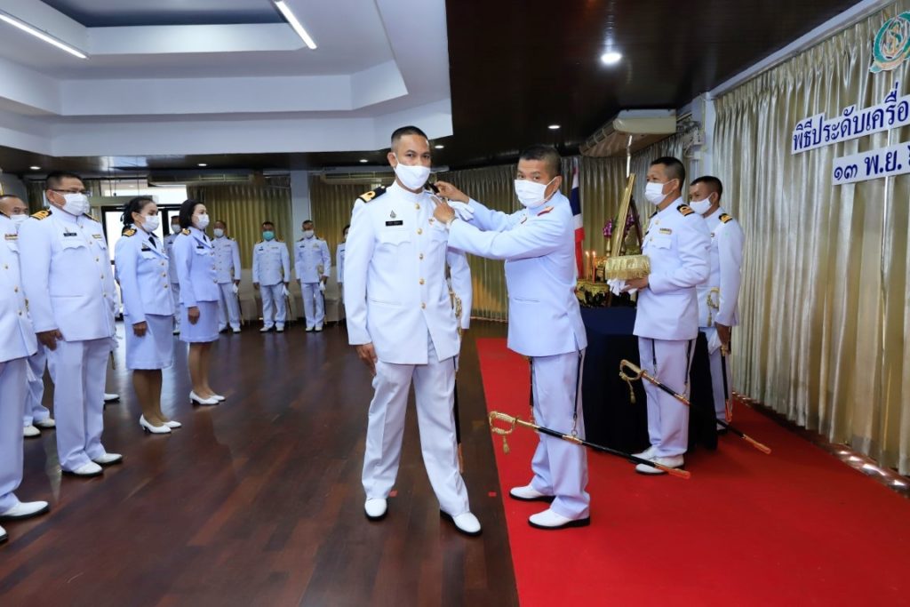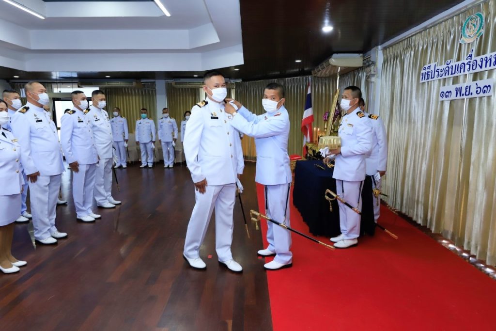 พลเรือโท วิชัย มนัสศิริวิทยา เจ้ากรมแพทย์ทหารเรือ เป็นประธานในพิธีประดับเครื่องหมายยศนายทหารชั้นสัญญาบัตรที่ได้รับการเลื่อนยศสูงขึ้น ณ ห้องปิ่นเพชร สโมสรกรมแพทย์ทหารเรือ เมื่อวันที่ ๑๓ พฤศจิกายน พ.ศ.๒๕๖๓