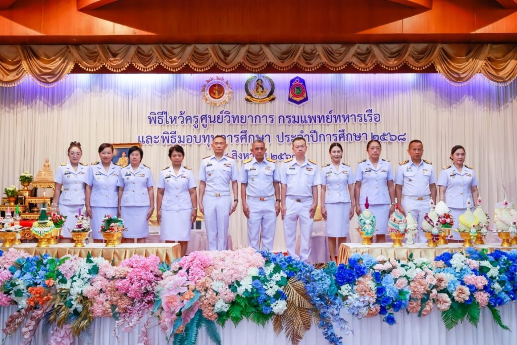 พลเรือตรี ปิยะวัฒน์ วงษ์วานิช รองเจ้ากรมแพทย์ทหารเรือ เป็นประธานในพิธีไหว้ครูและมอบทุนการศึกษา ประจำปีการศึกษา ๒๕๖๘ โดยมี ผู้บังคับบัญชา และข้าราชการกรมแพทย์ทหารเรือ เข้าร่วมพิธีฯ ณ ห้องปิ่นเกล้า สโมสรกรมแพทย์ทหารเรือ เมื่อวันที่ ๑๔ สิงหาคม พ.ศ.๒๕๖๘