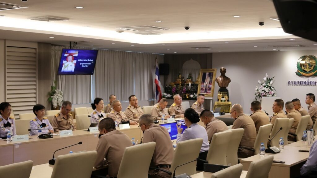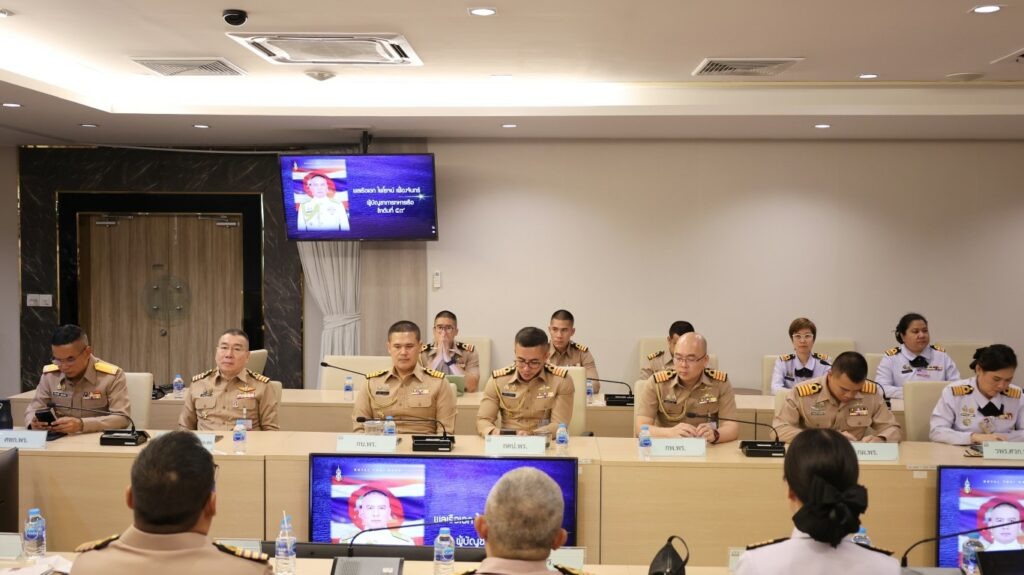 พลเรือตรี เรวัตร กิจณรงค์ รองเจ้ากรมแพทย์ทหารเรือ รับฟังการประชุมและมอบนโยบายของผู้บัญชาการทหารเรือ ประจำปีงบประมาณ ๒๕๖๙ รูปแบบ Online ผ่านระบบ Cisco Webex โดยมี ผู้บังคับบัญชา หัวหน้าหน่วยขึ้นตรงและข้าราชการกรมแพทย์ทหารเรือ ร่วมรับฟังฯ ณ ห้องประชุมกรมแพทย์ทหารเรือ ๓ อาคารกองบังคับการกรมแพทย์ทหารเรือ เมื่อวันที่ ๓ ตุลาคม พ.ศ.๒๕๖๘