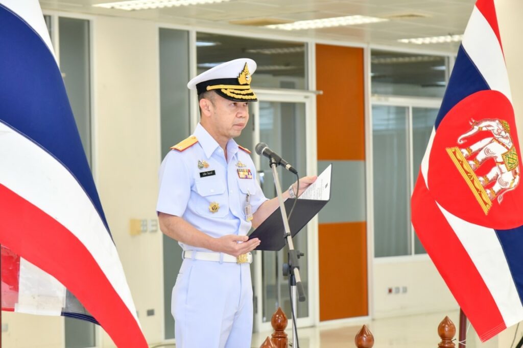 พลเรือตรี เรวัตร กิจณรงค์ รองเจ้ากรมแพทย์ทหารเรือ อ่านสารจาก พลเรือเอก ไพโรจน์ เฟื่องจันทร์ ผู้บัญชาการทหารเรือ ให้กำลังพลสังกัดกรมแพทย์ทหารเรือฟัง เนื่องในวันกองทัพเรือ ประจำปี ๒๕๖๘ ณ ห้องอเนกประสงค์ชั้น ๓ อาคารผู้ป่วยนอก โรงพยาบาลสมเด็จพระปิ่นเกล้า กรมแพทย์ทหารเรือ เมื่อวันที่ ๒๐ พฤศจิกายน ๒๕๖๘