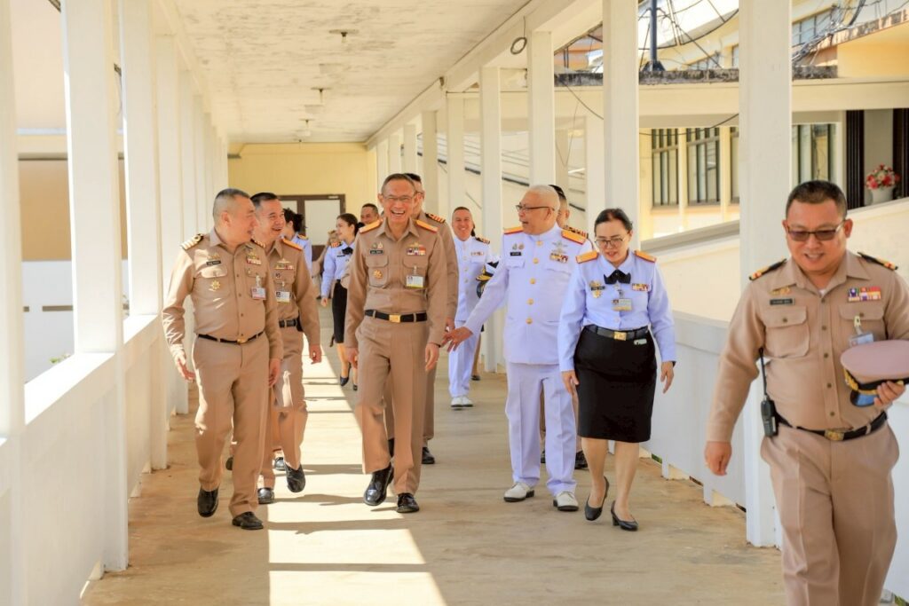 พลเรือโท สมชาย จันทโรธร เจ้ากรมแพทย์ทหารเรือพร้อมคณะ ตรวจเยี่ยมโรงพยาบาลอาภากรเกียรติวงศ์ ฐานทัพเรือสัตหีบ พร้อมรับฟังการบรรยายสรุป ผลการปฏิบัติงาน ปัญหาข้อขัดข้อง และเพื่อเป็นขวัญกำลังใจให้แก่กำลังพล ณ โรงพยาบาลอาภากรเกียรติวงศ์ ฐานทัพเรือสัตหีบ อำเภอสัตหีบ จังหวัดชลบุรี เมื่อวันที่ ๘ ธันวาคม พ.ศ.๒๕๖๘