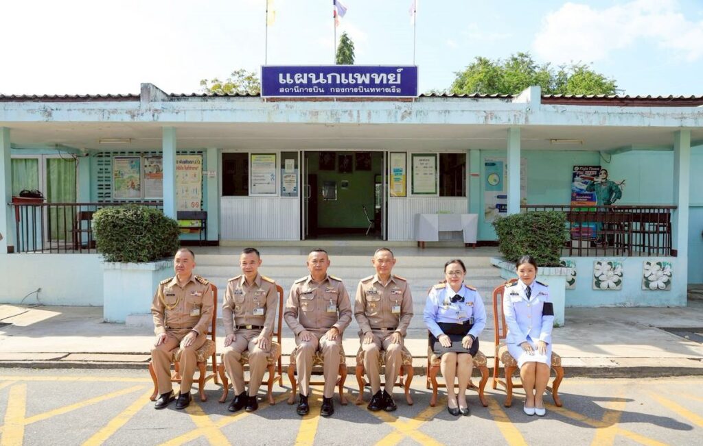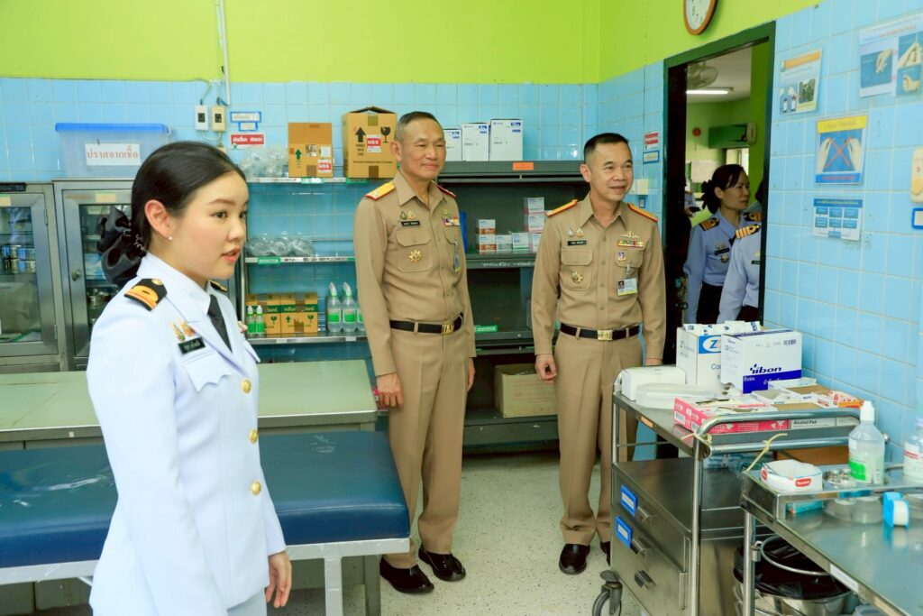 พลเรือโท สมชาย จันทโรธร เจ้ากรมแพทย์ทหารเรือพร้อมคณะ ตรวจเยี่ยมแผนกแพทย์ สถานีการบิน กองการบินทหารเรือ พร้อมรับฟังการบรรยายสรุป ผลการปฏิบัติงาน ปัญหาข้อขัดข้อง และเพื่อเป็นขวัญกำลังใจให้แก่กำลังพล ณ แผนกแพทย์ สถานีการบิน กองการบินทหารเรือ ตำบลพลา อำเภอบ้านฉาง จังหวัดระยอง เมื่อวันที่ ๘ ธันวาคม พ.ศ.๒๕๖๘