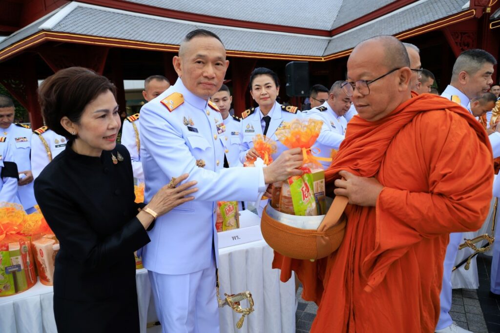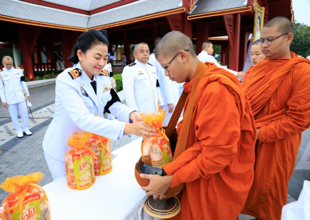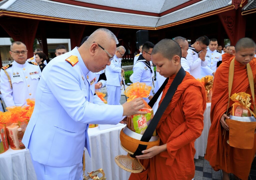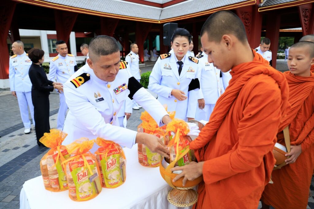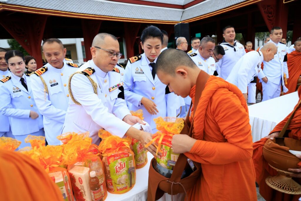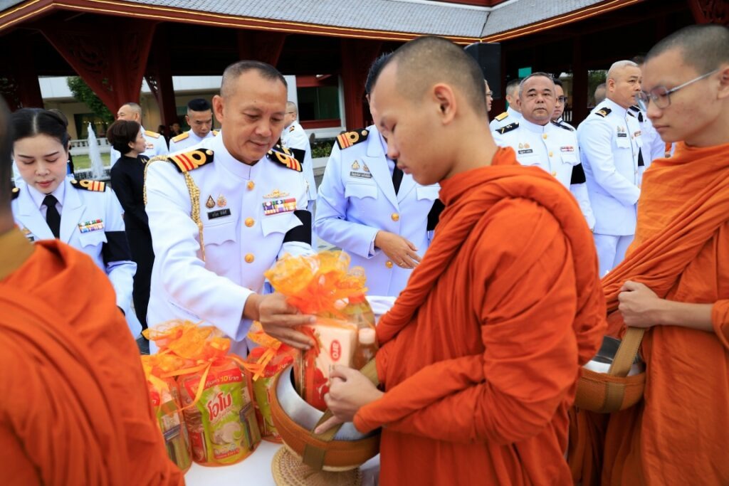 พลเรือโท สมชาย จันทโรธร เจ้ากรมแพทย์ทหารเรือ ร่วมพิธีทำบุญตักบาตรพระภิกษุ สามเณร จำนวน ๙๓ รูป เนื่องในวาระครบ ๕๐ วัน (ปัญญาสมวาร) แห่งการสวรรคตสมเด็จพระนางเจ้าสิริกิติ์ พระบรมราชินีนาถ พระบรมราชชนนีพันปีหลวง โดยมี ผู้บังคับบัญชาและข้าราชการกรมแพทย์ทหารเรือ ร่วมพิธีฯ ณ บริเวณลานทัศนาภิรมย์ หอประชุมกองทัพเรือ เมื่อวันที่ ๑๑ ธันวาคม พ.ศ.๒๕๖๘
