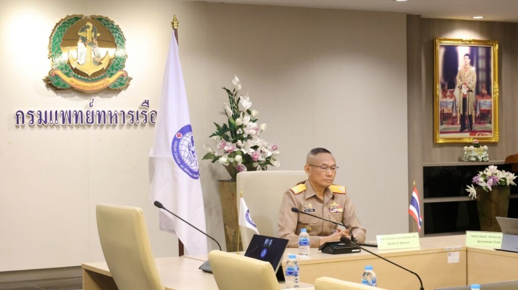 พลเรือโท สมชาย จันทโรธร เจ้ากรมแพทย์ทหารเรือ และกรรมการบริหารศูนย์แพทย์ทหารอาเซียน (ASEAN Center of Military Medicine) เข้าร่วมการประชุมคณะกรรมการบริหารศูนย์แพทย์ทหารอาเซียน ครั้งที่ ๑ ประจำปี ๒๕๖๙ การประชุมผ่านระบบทางไกลออนไลน์ (VTC) โดยมี ผู้บังคับบัญชาและข้าราชการกรมแพทย์ทหารเรือ ร่วมการประชุมฯ ณ ห้องประชุมกรมแพทย์ทหารเรือ ๓ อาคารกองบังคับการกรมแพทย์ทหารเรือ เมื่อวันที่ ๒๖ มกราคม พ.ศ.๒๕๖๙