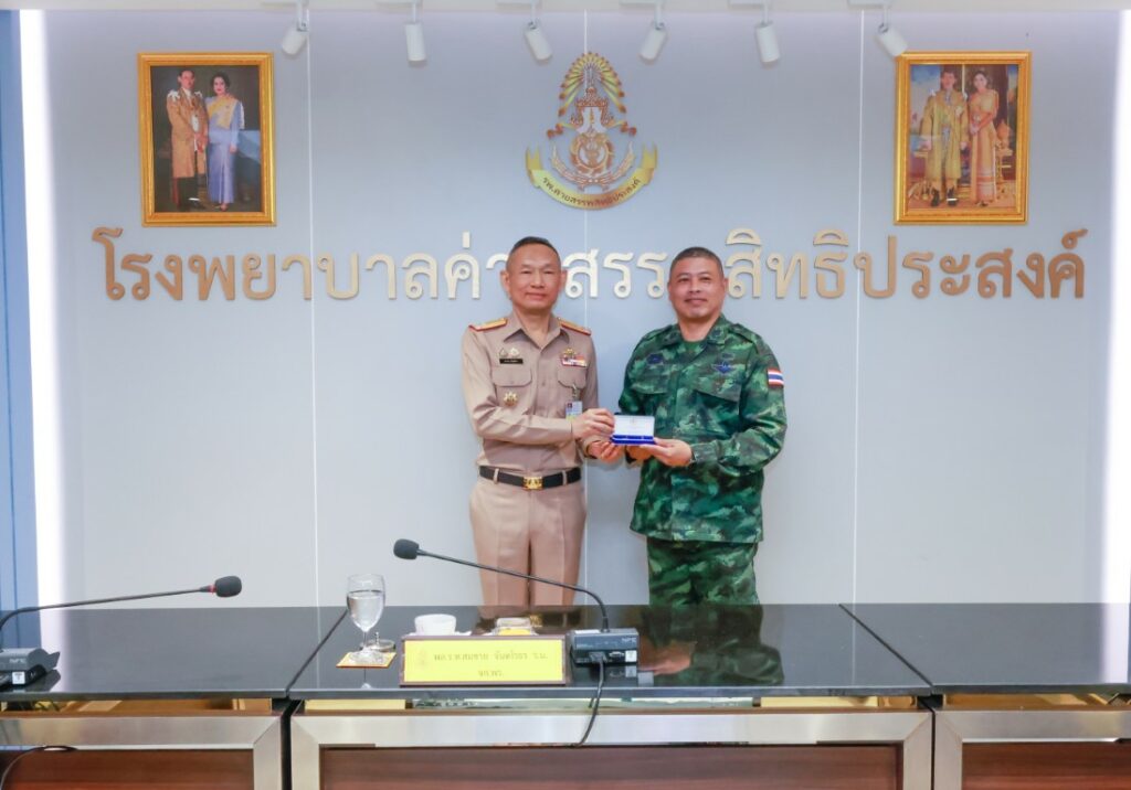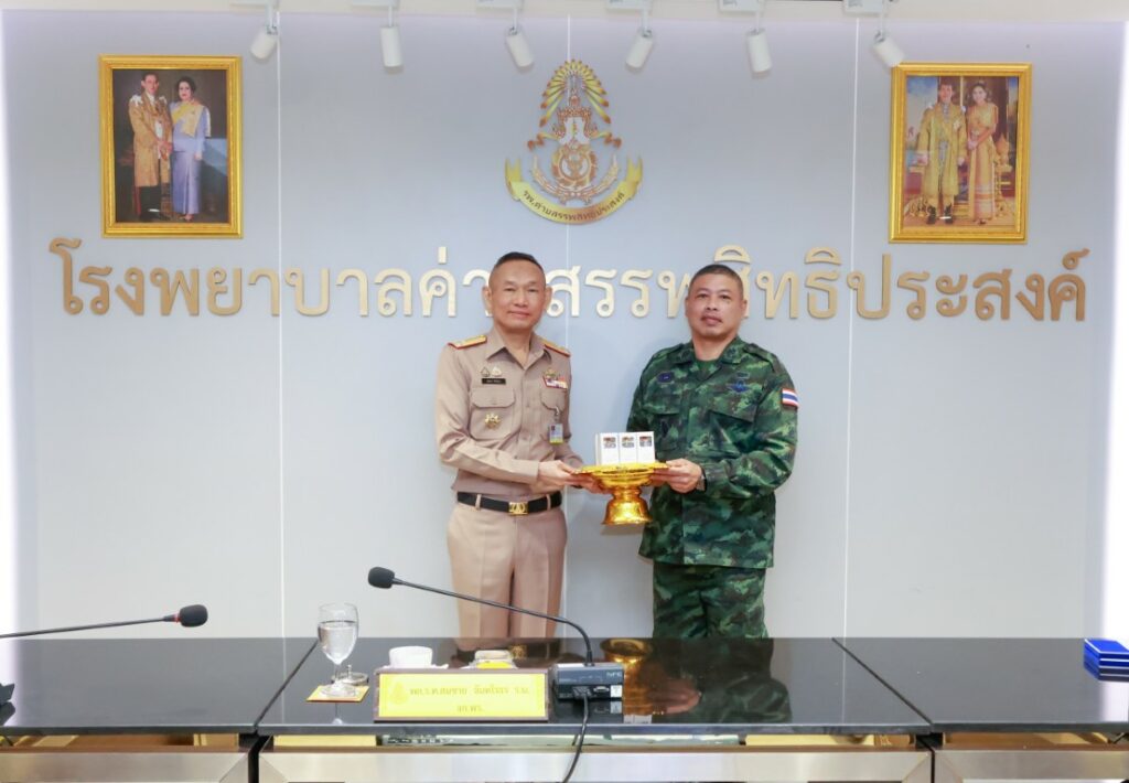 พลเรือโท สมชาย จันทโรธร เจ้ากรมแพทย์ทหารเรือ พร้อมคณะ เยี่ยมชมโรงพยาบาลค่ายสรรพสิทธิประสงค์ และรับฟังการบรรยายสรุปผลการปฏิบัติภารกิจ พร้อมทั้งมอบของที่ระลึก โดยมี พันเอก สุรังค์ วิทยาวงศรุจี ผู้อำนวยการโรงพยาบาลค่ายสรรพสิทธิประสงค์ และคณะ ให้การต้อนรับ ณ โรงพยาบาลค่ายสรรพสิทธิประสงค์ จังหวัดอุบลราชธานี เมื่อวันที่ ๑๒ กุมภาพันธ์ พ.ศ. ๒๕๖๙