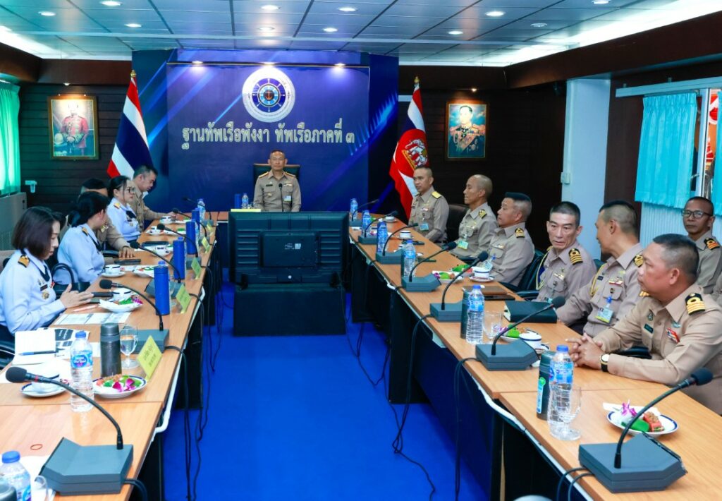 พลเรือโท สมชาย จันทโรธร เจ้ากรมแพทย์ทหารเรือ พร้อมคณะ ตรวจเยี่ยมหน่วยแพทย์กองทัพเรือ ในพื้นที่ทัพเรือภาคที่ ๓ เพื่อติดตามการปฏิบัติงานและรับทราบสถานการณ์ด้านการแพทย์ของหน่วยในพื้นที่ ในการนี้ เจ้ากรมแพทย์ทหารเรือ พร้อมคณะ เข้าเยี่ยม พลเรือตรี พงษ์มิตร ณรงค์กูล ผู้บัญชาการฐานทัพเรือพังงา ทัพเรือภาคที่ ๓ พร้อมรับฟังการบรรยายสรุป ปัญหาข้อขัดข้อง และเสนอแนวทางการแก้ไขปัญหา เพื่อพัฒนาการปฏิบัติงานด้านการแพทย์ให้มีประสิทธิภาพยิ่งขึ้น และตรวจเยี่ยมโรงพยาบาลฐานทัพเรือพังงา ทัพเรือภาคที่ ๓ เพื่อรับทราบภารกิจ ผลการดำเนินงาน ปัญหาข้อขัดข้อง และเพื่อเป็นขวัญกำลังใจแก่กำลังพลสายแพทย์ โดยมี นาวาเอกสุทธิใจ ใยทอง ผู้อำนวยการโรงพยาบาลฐานทัพเรือพังงา พร้อมกำลังพลโรงพยาบาลฯ และเจ้าหน้าที่สายแพทย์จากหน่วยเรือ รวมถึงหน่วยรักษาความปลอดภัยทางทะเล ให้การต้อนรับ ณ พื้นที่ทัพเรือภาคที่ ๓ จังหวัดพังงา เมื่อวันที่ ๑๗ มีนาคม พ.ศ.๒๕๖๙