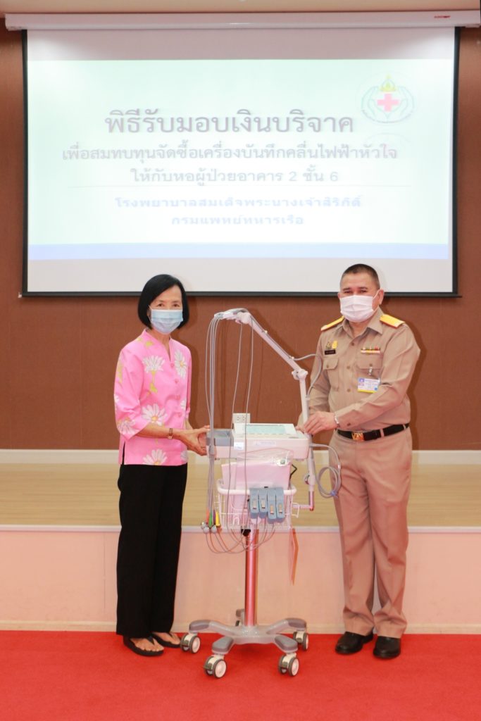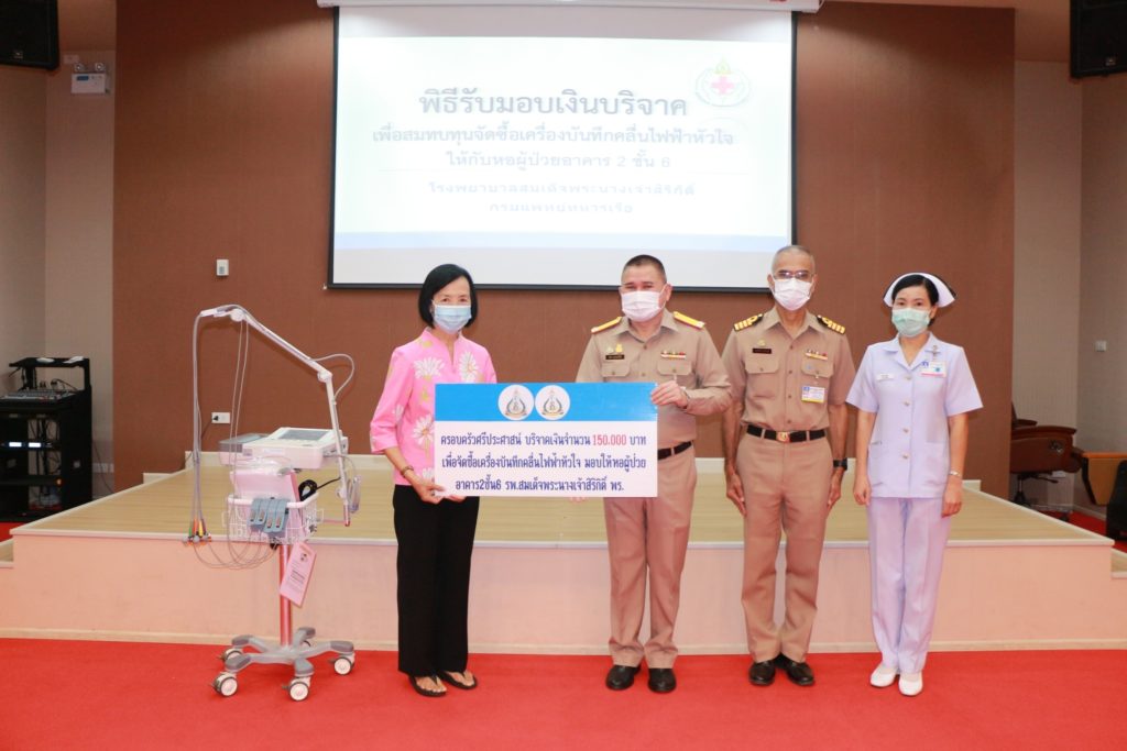 เมื่อ 12 มี.ค.64 พล.ร.ต.ชลธร สุวรรณกิตติ ผอ.รพ.สมเด็จพระนางเจ้าสิริกิติ์ พร. รับมอบเงินบริจาค จำนวน 150,000 บาท จาก ครอบครัวศรีประศาสน์ เพื่อนำไปจัดซื้อเครื่องบันทึกคลื่นไฟฟ้าหัวใจ มอบให้กับ หอผู้ป่วยอาคาร 2 ชั้น 6 ณ ห้องประชุม 20 ปี รพ.ฯ