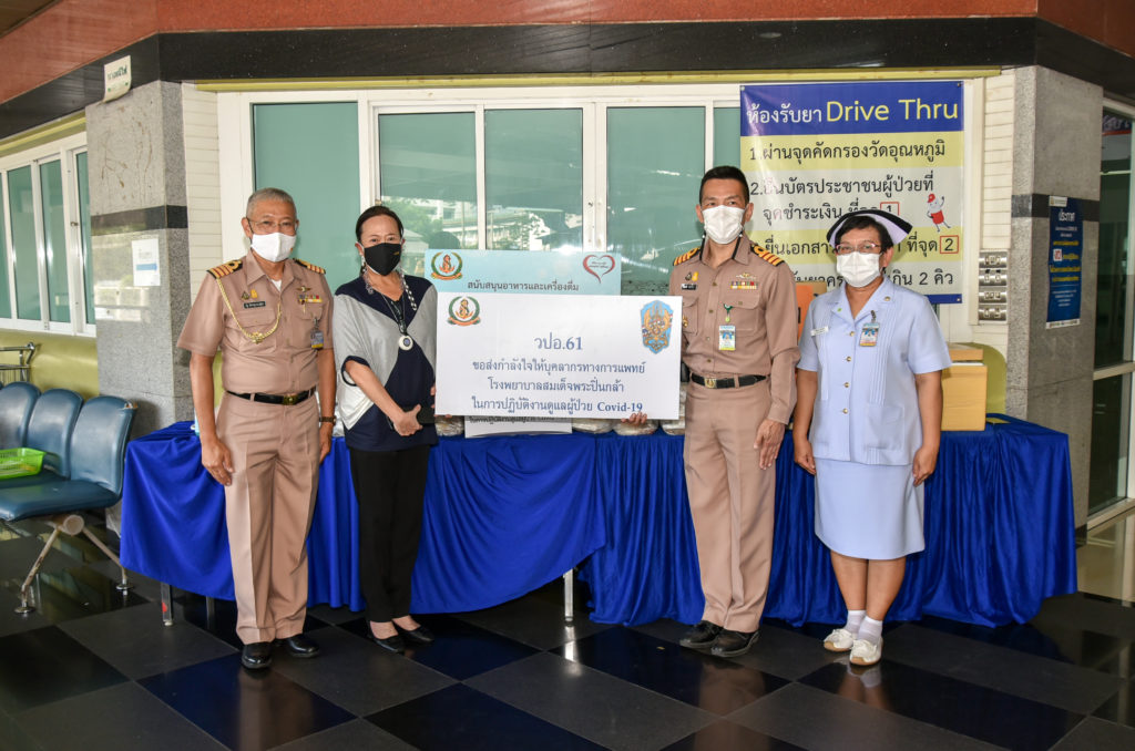 เมื่อวันที่ 3 พ.ค.64 น.อ.ณัฐ อิศรางกูร ณ อยุธยา หัวหน้านายทหารฝ่ายอำนวยการ พร. พร้อมด้วย น.อ.พัฒนชัย เฉลิมวรรณ์ รอง ผอ.รพ.สมเด็จพระปิ่นเกล้า พร. ฝ่ายสนับสนุน และ น.อ.หญิง จารุนันท์ สุภาพงษ์ รอง ผอ.รพ.สมเด็จพระปิ่นเกล้า พร. ฝ่ายการพยาบาล รับมอบอาหารกล่อง จำนวน 90 ชุด จากคณะ วปอ.61 โดยมอบให้เป็นเวลา 2 สัปดาห์ เพื่อสนับสนุนและเป็นกำลังใจให้กับบุคลากรทางการแพทย์ที่ปฏิบัติงานดูแลผู้ป่วย Covid-19