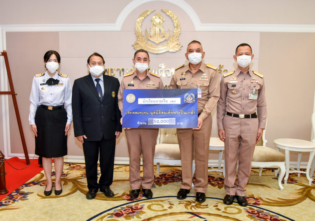 เมื่อวันที่ 5 พ.ค.64 พล.ร.ต.นิธิ พงศ์อนันต์ ผอ.รพ.สมเด็จพระปิ่นเกล้า พร. พร้อมด้วย พล.ร.ต.เฉียบ สหัสสานนท์ กรรมการและเหรัญญิกมูลนิธิฯ และ น.อ.หญิง พิมพ์สิริ ชมะนันทน์ กรรมการและผู้จัดการมูลนิธิฯ รับมอบเงินบริจาคในนามนักเรียนนายเรือ 79 จำนวน 50,000 บาท โดยมี พล.ร.ท.ชัยโรจน์ เพ็ชร์รัตน์ ผู้ทรงคุณวุฒิพิเศษสำนักงานปลัดกระทรวงกลาโหม/ประธานนักเรียนนายเรือ 79 และ พล.ร.ต.ดุลยพัฒน์ ลอยรัตน์ จก.สก.ทร. เป็นผู้แทนมอบ สมทบทุนมูลนิธิสมเด็จพระปิ่นเกล้า เพื่อผู้ป่วย Covid-19 รพ.สมเด็จพระปิ่นเกล้า พร. ณ ห้องรับรอง สำนักงานผู้อำนวยการ รพ.ฯ