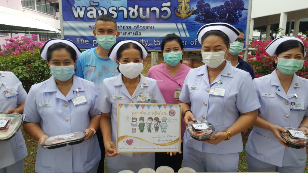 เมื่อวันที่ 5 พ.ค.64 พล.ร.ต.คมสัน วสุวานิช ผอ.รพ.อาภากรเกียรติวงศ์ ฐท.สส. พร้อมด้วยข้าราชการและลูกจ้าง รพ.อาภากรเกียรติวงศ์ ฐท.สส. ขอกราบขอบพระคุณท่านผู้บัญชาการทหารเรือ ที่ได้กรุณาจัดอาหารให้แก่เจ้าหน้าที่ ที่ปฎิบัติงานหอผู้ป่วยโควิด-19 รพ.อาภากรเกียรติวงศ์ ฐท.สส. / ข่าวบริจาค / By หน่วยขึ้นตรง จำนวนคนดู : 12