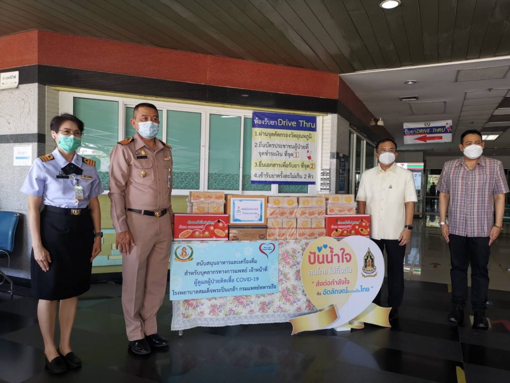 เมื่อวันที่ 18 พ.ค.64 น.อ.สมพร ระวิงทอง รอง ผอ.รพ.สมเด็จพระปิ่นเกล้า พร. ฝ่ายบริหาร รับมอบอาหารข้าวเหนียวหมูทอด จำนวน 130 กล่อง, นม 1 ลัง และส้ม 2 ลัง พร้อมทั้งสเปรย์แอลกอฮอล์ จำนวน 120 ขวด จากโครงการปันน้ำใจคนไทยไม่ทิ้งกัน ของกระทรวงวัฒนธรรม โดยมี คุณกฤษฎา คงกะจันทร์ หัวหน้าผู้ตรวจราชการกระทรวงวัฒนธรรม และคุณนัฐศิษฏ์ ธนชวาลย์ ผู้อำนวยการกองตรวจราชการ เป็นผู้มอบ เพื่อสนับสนุนและเป็นกำลังใจให้กับบุคลากรทางการแพทย์ที่ปฏิบัติงานดูแลผู้ป่วย Covid-19 ณ อาคารเฉลิมพระเกียรติฯ 80 พรรษา / ข่าวบริจาค / By หน่วยขึ้นตรง จำนวนคนดู : 93