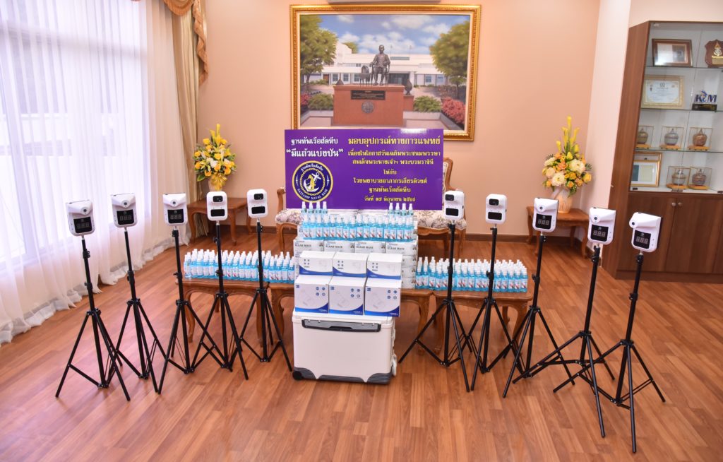 เมื่อวันที่ 17 มิ.ย.64 พล.ร.ท.อนุชาติ อินทรเสน ผู้บัญชาการฐานทัพเรือสัตหีบ มอบอุปกรณ์ทางการแพทย์ 1. เครื่องวัดอุณหภูมิหน้าผาก แบบอินฟราเรด จำนวน 10 เครื่อง 2. หน้ากากอนามัย จำนวน 80 กล่อง 3. กระติกเก็บวัคซีนแบบควบคุมอุณหภูมิ จำนวน 1 กระติก 4. แอลกอฮอล์แบบสเปรย์ ขนาด 100 ml. จำนวน 200 ขวด ให้กับ รพ.อาภากรเกียรติวงศ์ ฐท.สส. ภายใต้การจัดกิจกรรม “มีแล้วแบ่งปัน” เนื่องในโอกาสวันเฉลิมพระชนมพรรษา สมเด็จพระนางเจ้าฯ พระบรมราชินี 3 มิ.ย.64 โดย พล.ร.ต.คมสัน วสุวานิช ผอ.รพ.อาภากรเกียรติวงศ์ ฐท.สส. พร้อมคณะผู้บริหาร รพ.ฯ ร่วมรับมอบ ณ ห้องรับรองอาภากรเกียรติวงศ์ / ข่าวบริจาค / By หน่วยขึ้นตรง จำนวนคนดู : 32