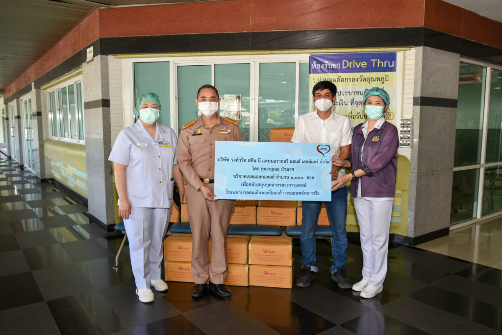 เมื่อวันที่ 5 ส.ค.64 พล.ร.ต.นิธิ พงศ์อนันต์ ผอ.รพ.สมเด็จพระปิ่นเกล้า พร. รับมอบเจลแอลกอฮอล์ จำนวน 1,000 ขวด จาก บริษัท วงศ์วริศ สกิน มี แลบบอราทอรี่ แอนด์ เฮลท์แคร์ จำกัด โดย คุณวสุเมธ บัวมาศ เพื่อสนับสนุนการปฏิบัติงานของบุคลากรทางการแพทย์ในสถานการณ์การแพร่ระบาดของเชื้อ COVID-19 / ข่าวบริจาค / By หน่วยขึ้นตรง จำนวนคนดู : 9
