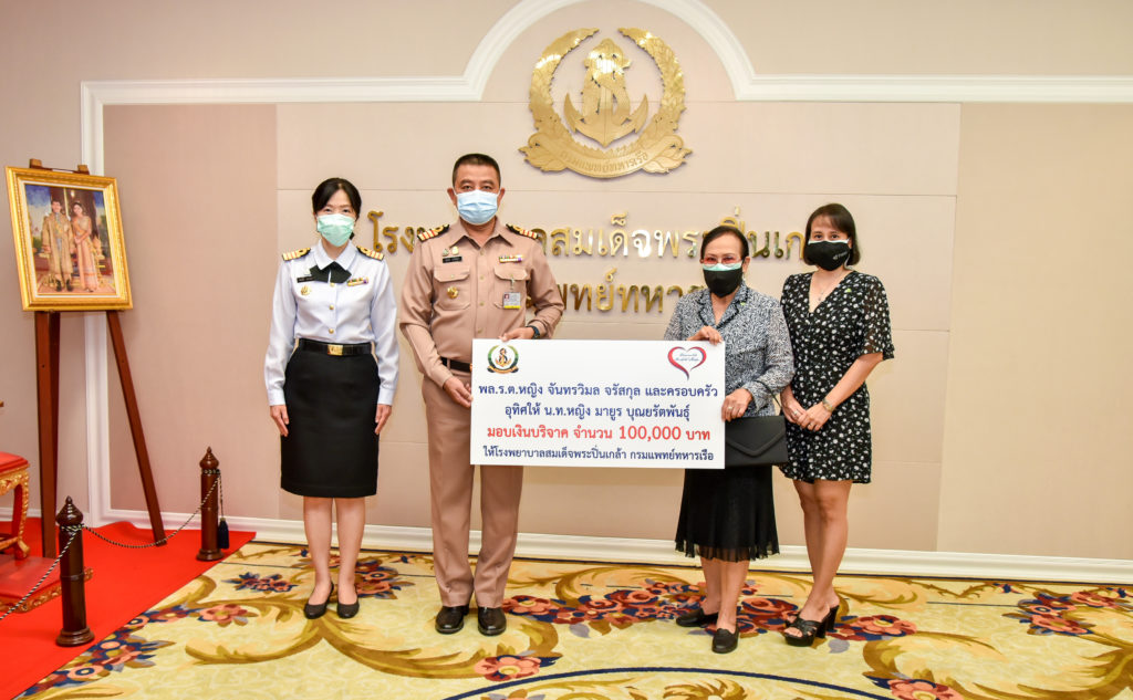 เมื่อวันที่ 10 ส.ค.64 น.อ.สมพร ระวิงทอง รอง ผอ.สมเด็จพระปิ่นเกล้า (ฝ่ายบริหาร) พร. และ น.อ.หญิง พิมพ์สิริ ชมะนันทน์ ผอ.ศูนย์รับบริจาค รพ.ฯ รับมอบเงินบริจาค จำนวน 100,000 บาท จาก พล.ร.ต.หญิง จันทรวิมล จรัสกุล และครอบครัว เพื่อพัฒนาบริการทางการแพทย์ รพ.ฯ ณ ห้องรับรอง สำนักงานผู้อำนวยการ รพ.ฯ